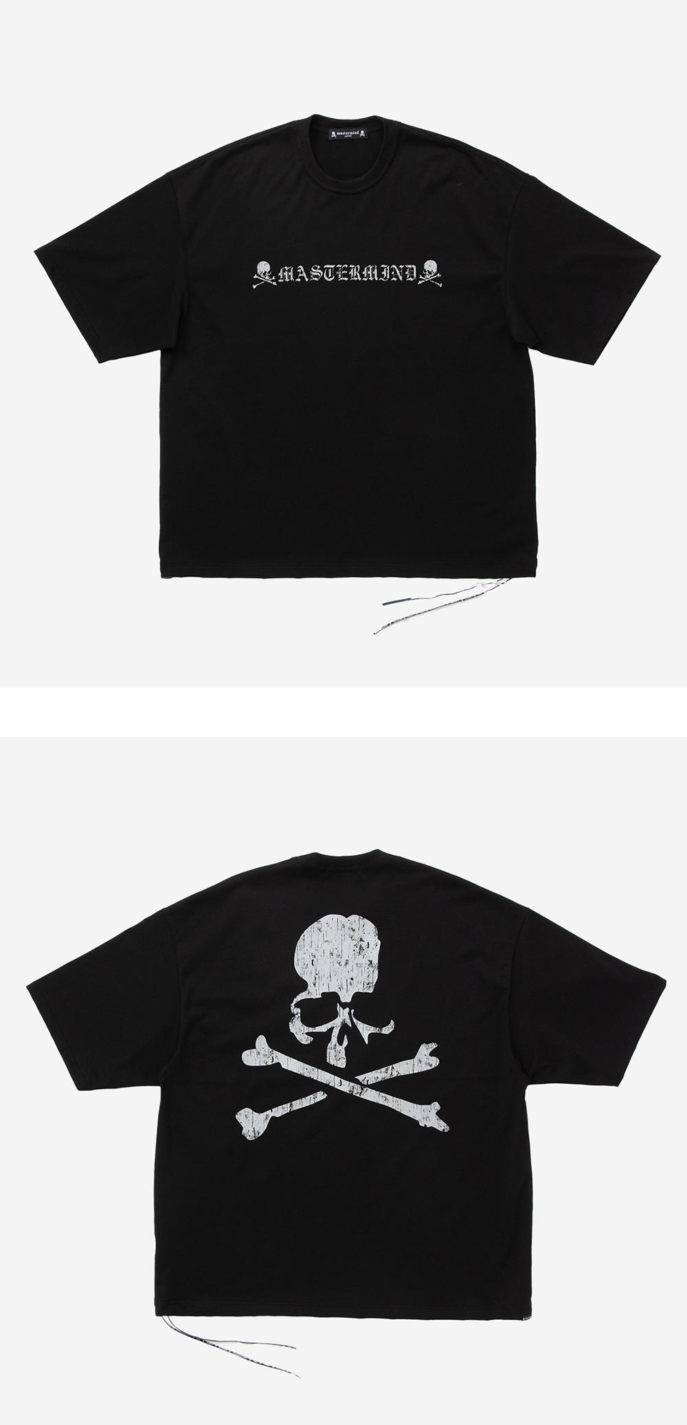 24AW 컬렉션의 시즈널 로고 프린팅으로 완성된 마스터마인드 재팬 티입니다. - 'MASTERMIND' 흑자체 로고 - 후면의 데미지드 스컬 로고