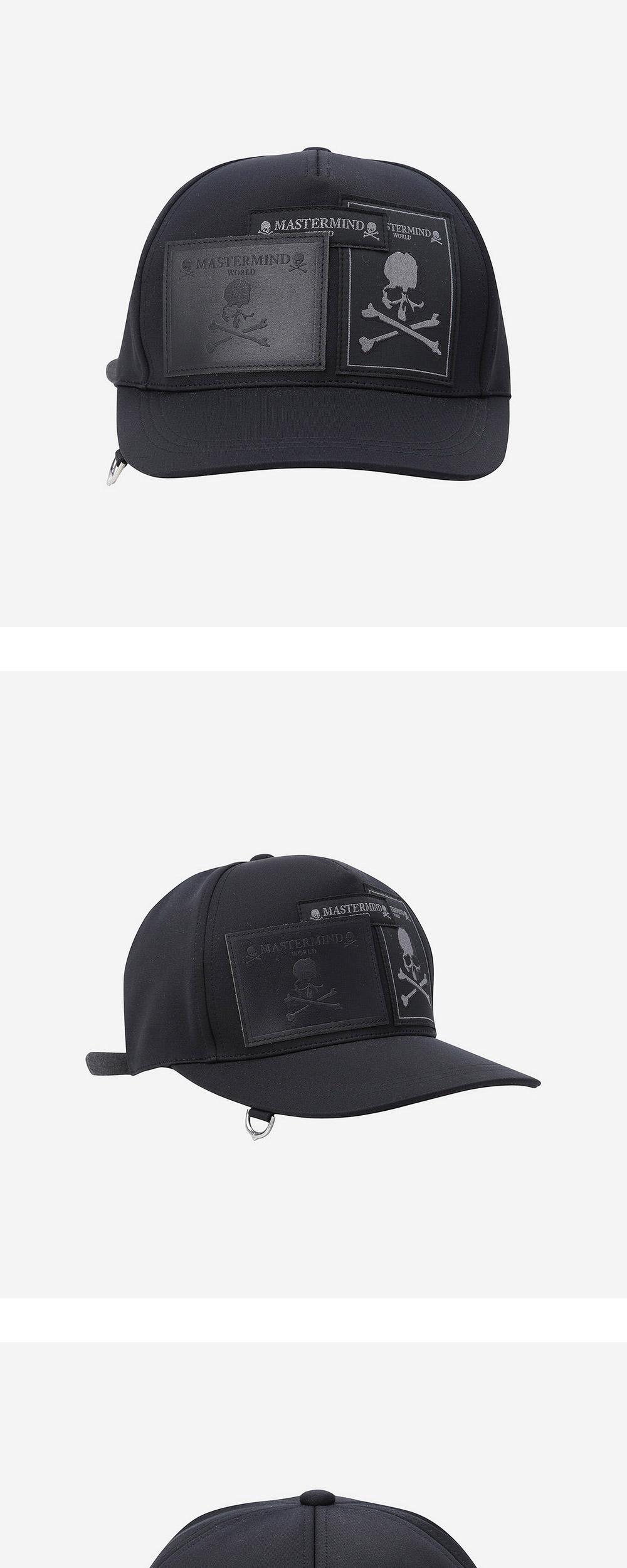 마스터마인드의 시그니처 로고가 은은하게 돋보이는 볼캡 - 전면부 3개의 로고 패치 및 D링 디테일 - 조절 가능한 스트랩 - 스트랩 고정장치에 적용된 로고 디테일