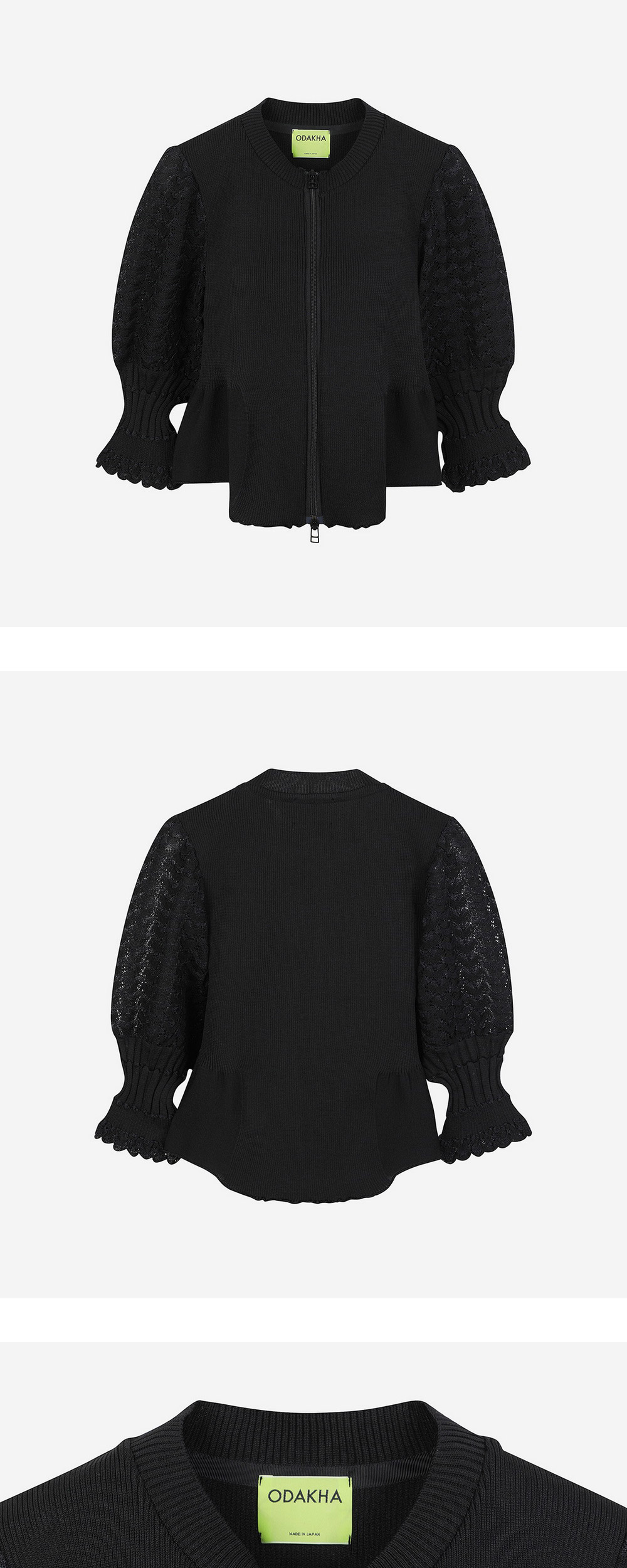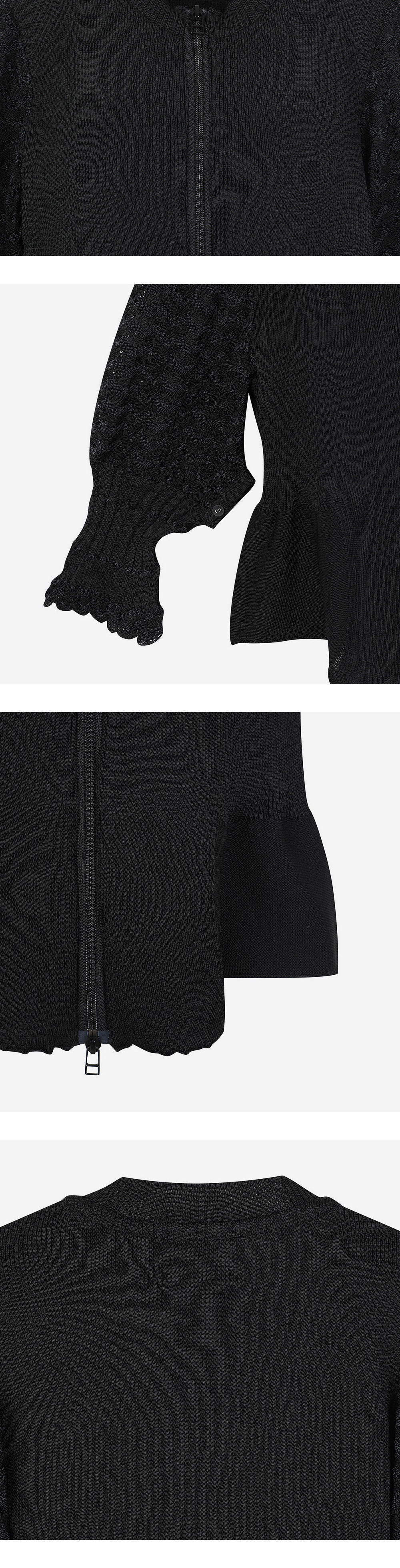 Odakha Women Puff Sleeves W Zipper Gynoid Knit Black - 24FW