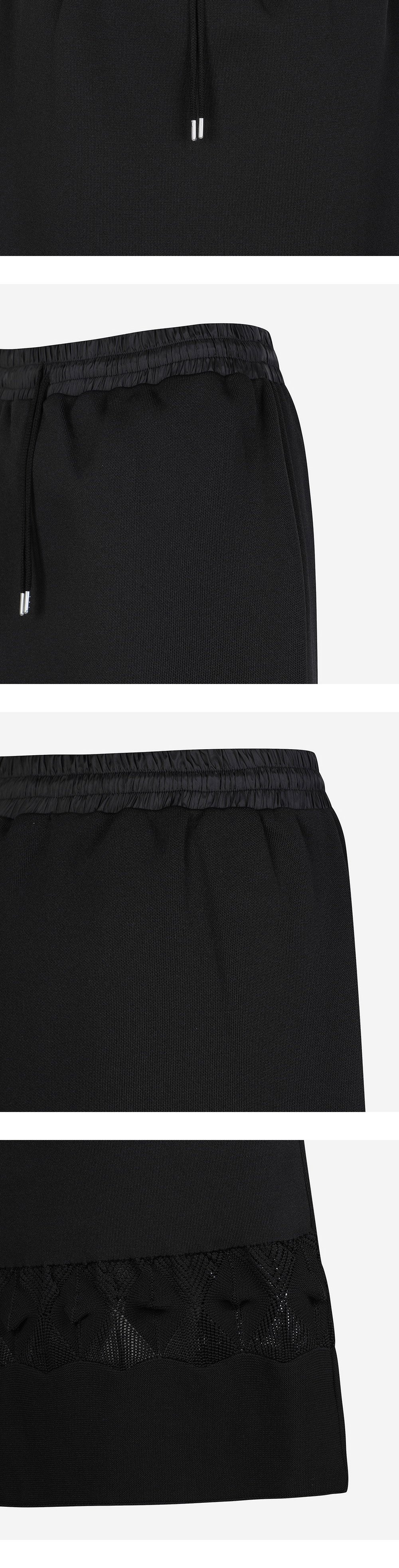 니트를 주로 사용하는 도쿄 기반 브랜드, 오다카의 타이트 스커트 - 독특한 표면감과 드로우코드 마감이 돋보이는 디자인 - 하단부 다이아몬드 패턴 시스루 디테일 - 허리에 적용된 드로우코드로 사이즈 조절 가능