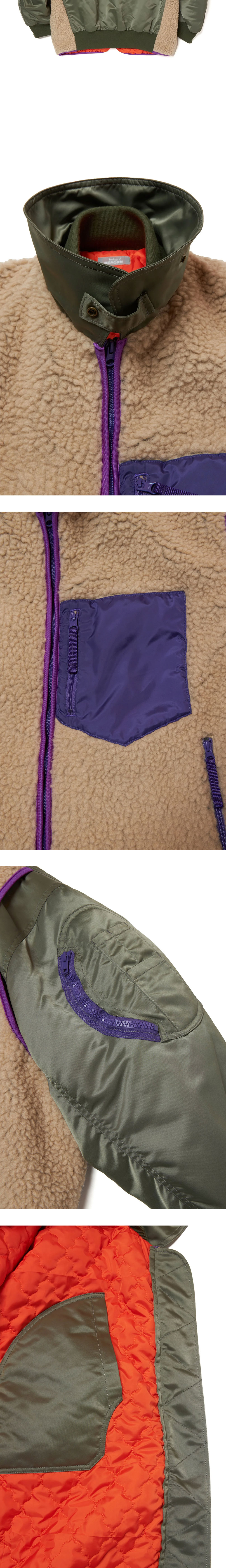 나일론 자켓에 후리스 베스트 디테일로 활용도를 높인 컬러비콘의 블루종입니다. - 전면에 후리스 베스트 패널 - 전면 지퍼 포켓 3개, 소매 지퍼 포켓 1개 - 두 가지 스타일로 연출 가능한 카라 디자인
