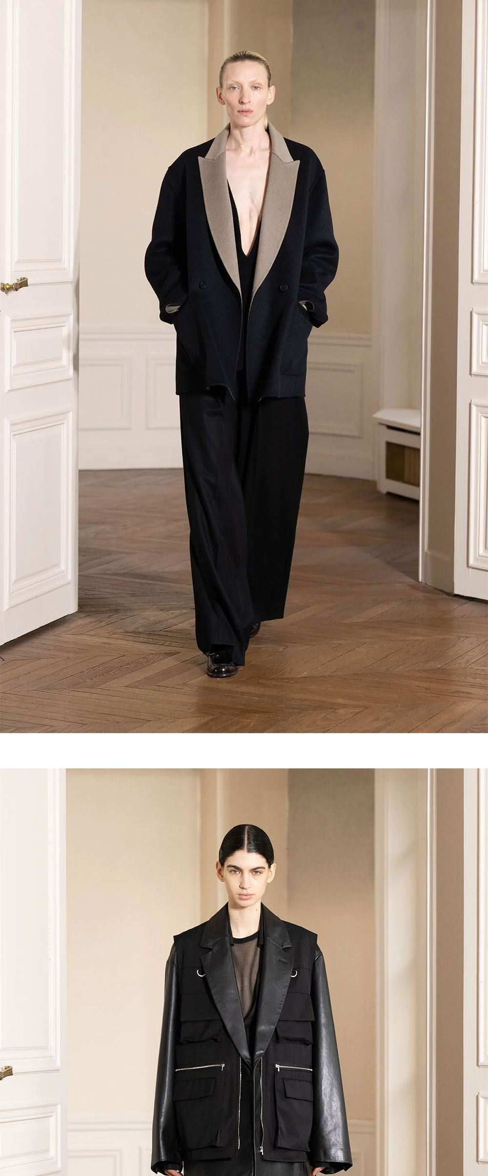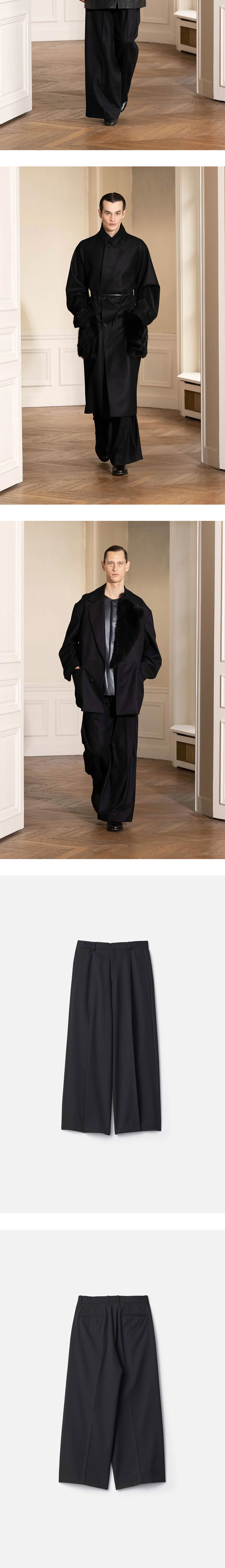 유려하게 떨어지는 와이드 실루엣이 돋보이는 슈타인의 엑스트라 와이드 트라우저입니다. - 레귤러 핏 - 전면 오른쪽의 단일 플리츠