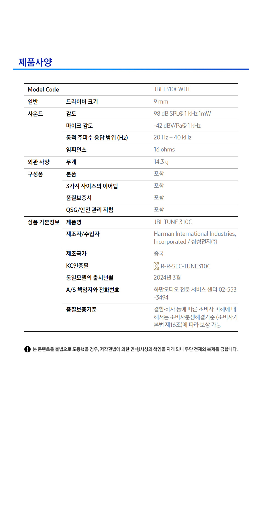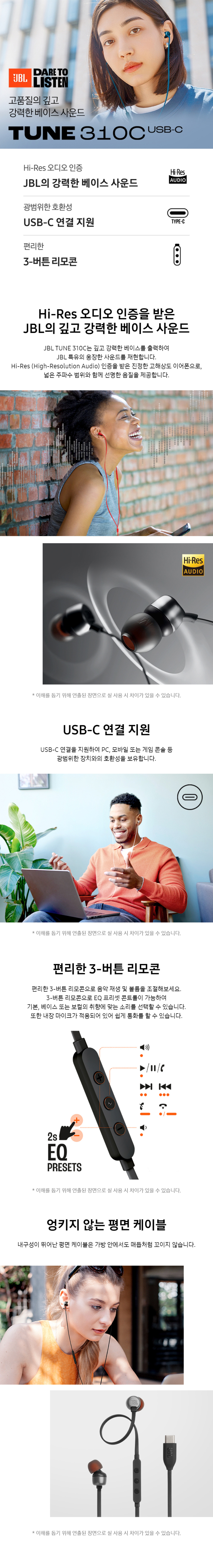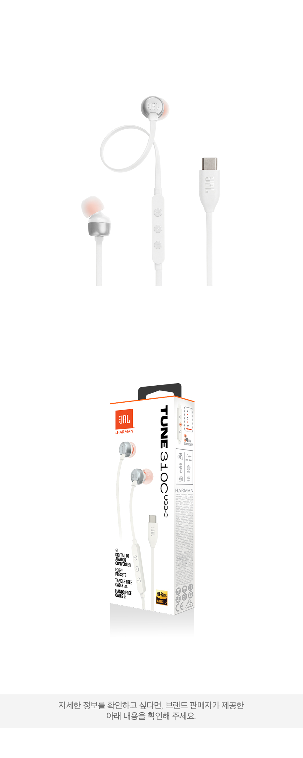 제이비엘 TUNE 310C 유선 이어폰 화이트