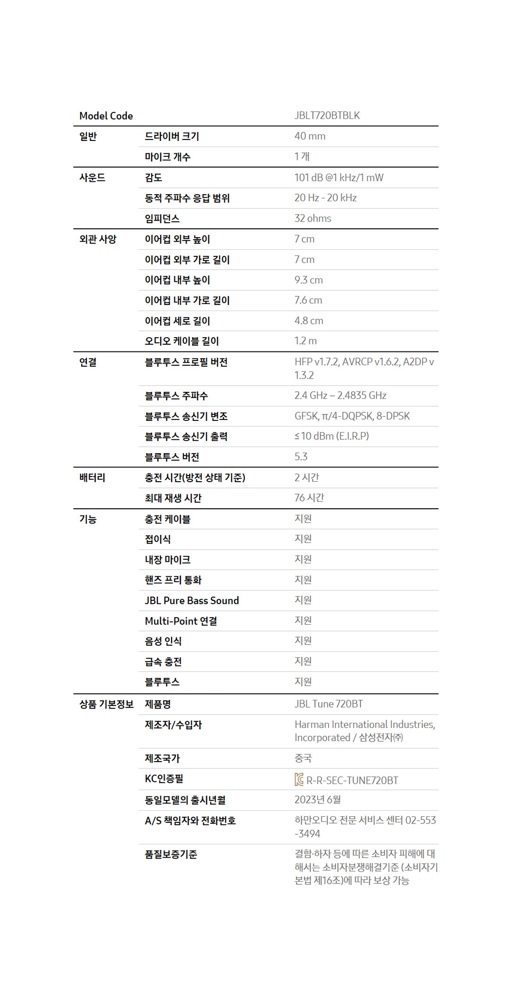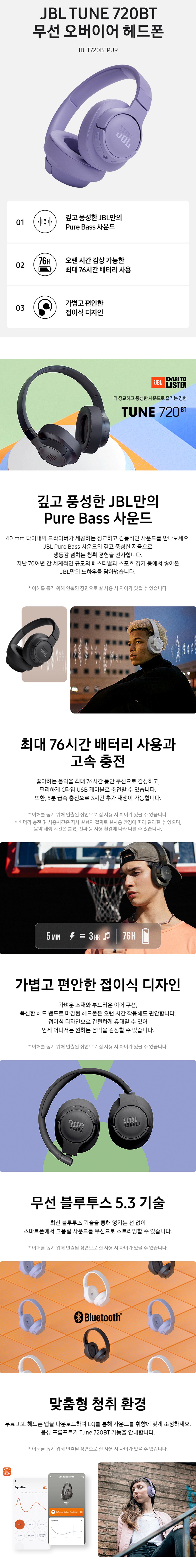 제이비엘 T720BT 오버이어 블루투스 헤드폰 퍼플