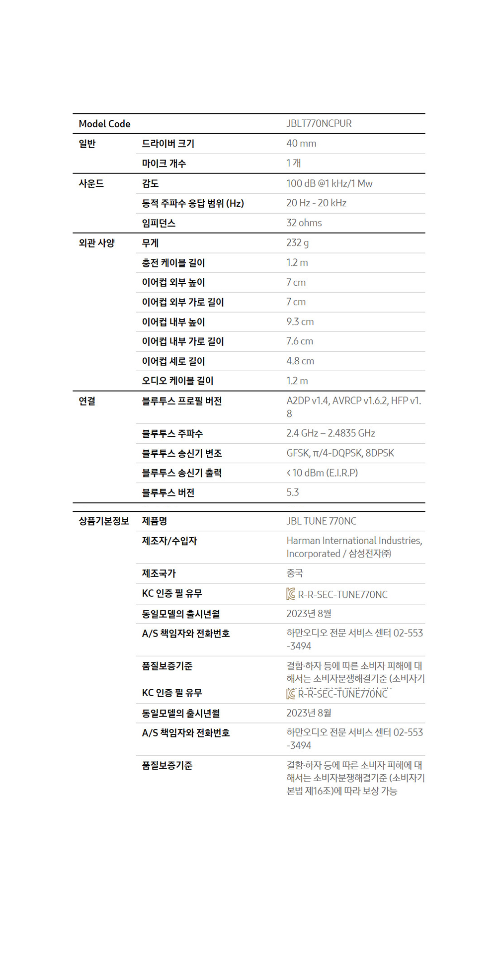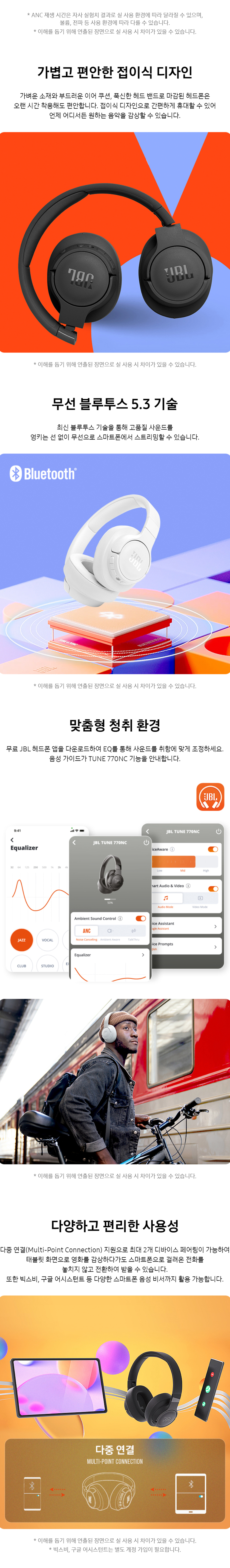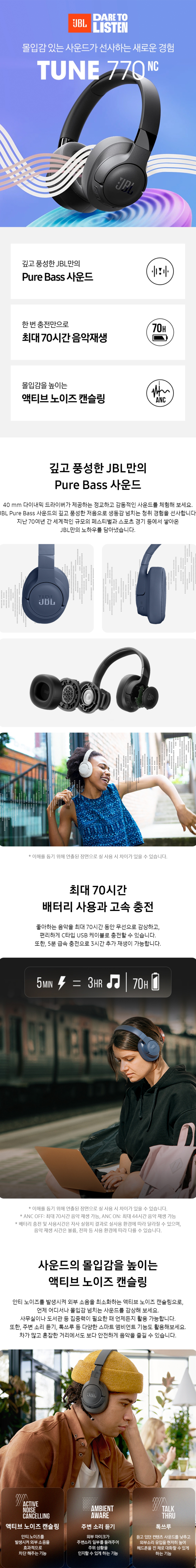 제이비엘 T770NC 오버이어 노이즈캔슬링 블루투스 헤드폰 블랙