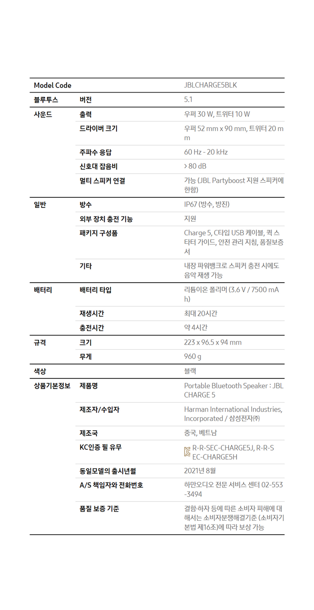 제이비엘 CHARGE5 블루투스 스피커 블랙