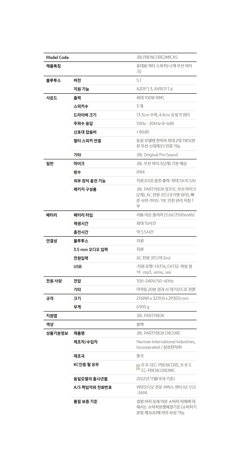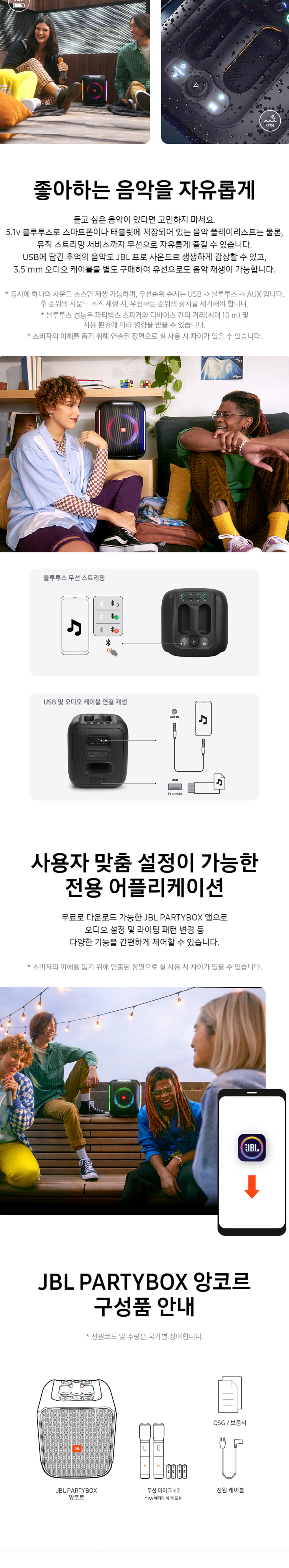 제이비엘 PARTYBOX ENCORE 파티박스 앙코르 블루투스 스피커 노래방 마이크 2개 포함