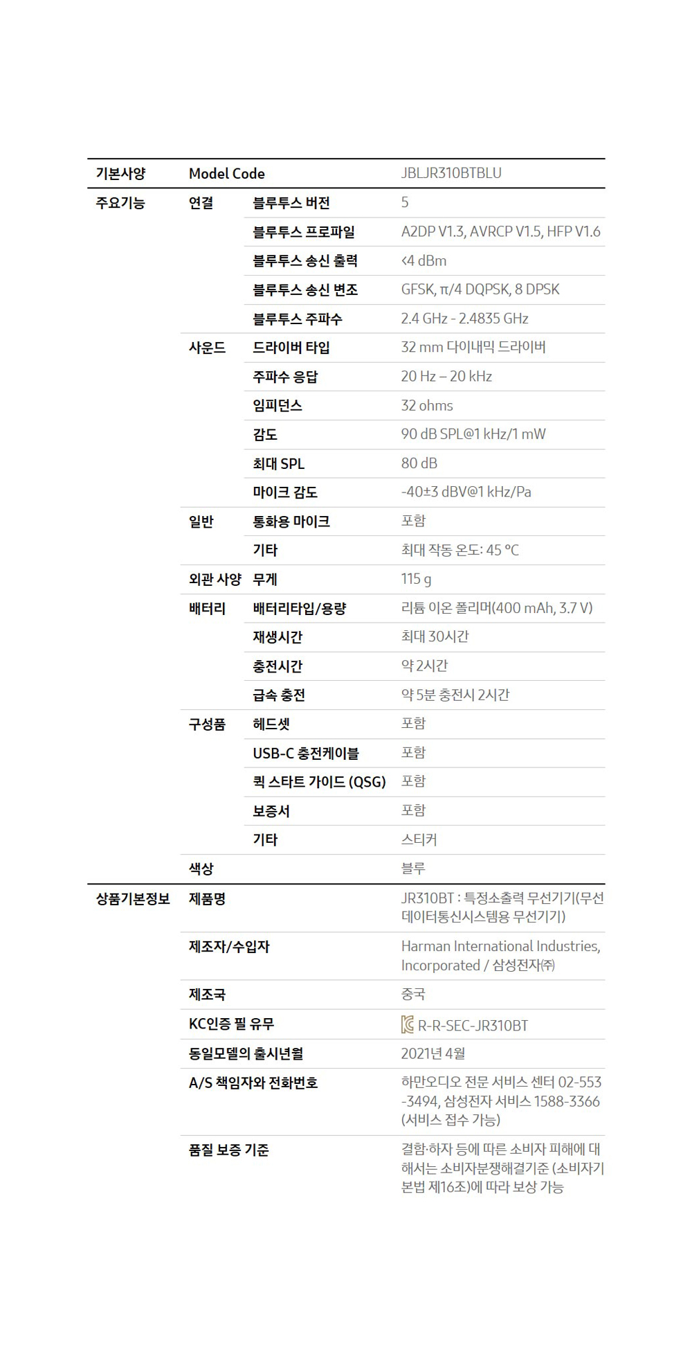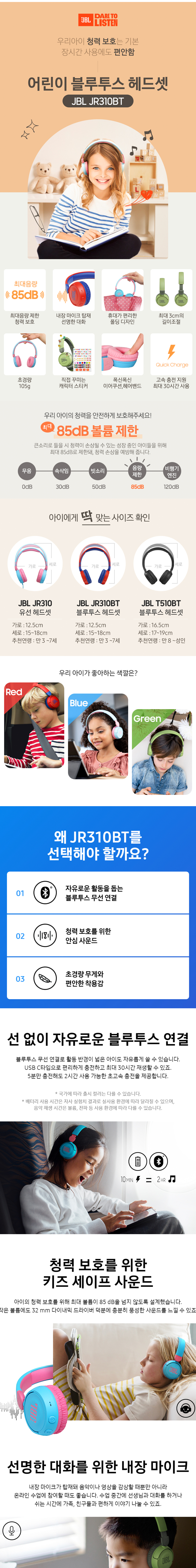 제이비엘 JR310BT 무선 어린이 블루투스 헤드폰 블루