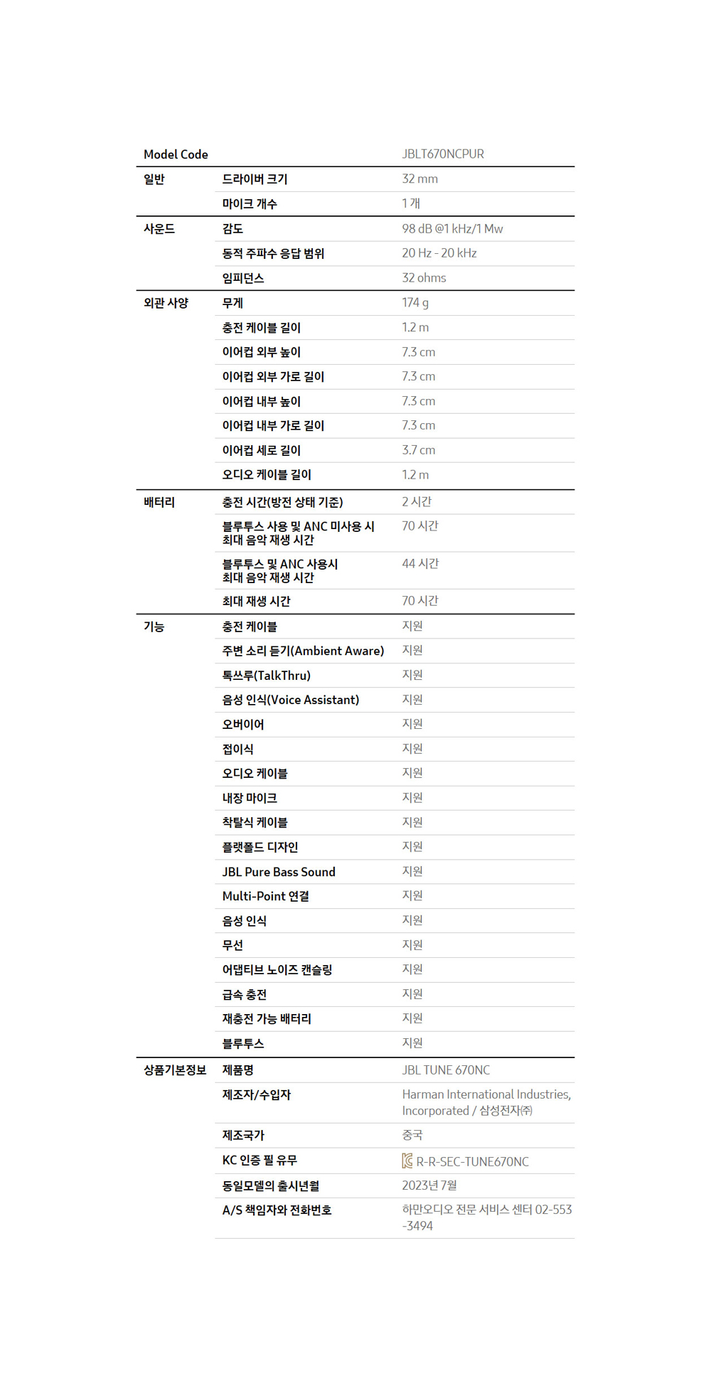 제이비엘 T670NC 노이즈캔슬링 블루투스 헤드셋 퍼플