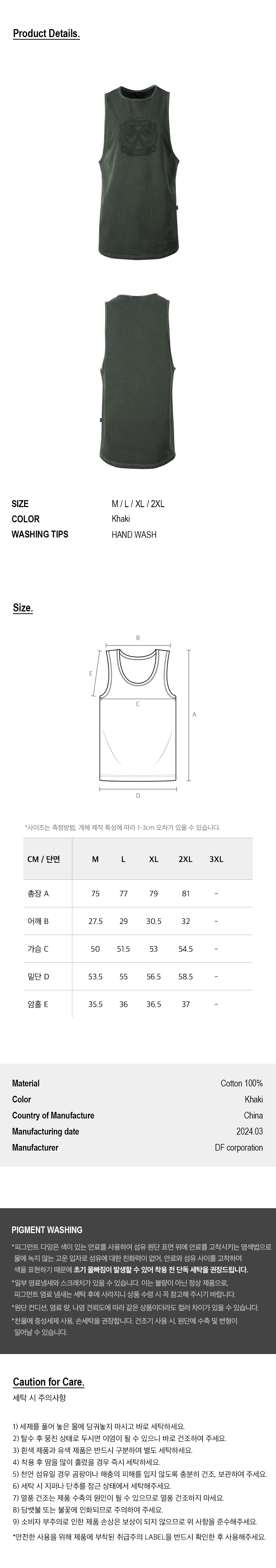 에이치덱스 피그먼트 레인저 슬리브리스 카키