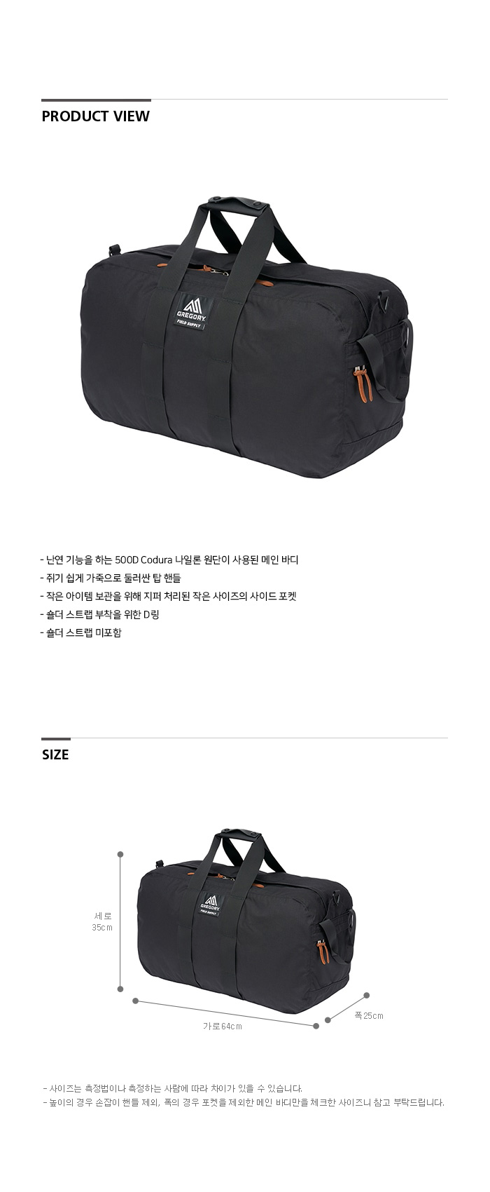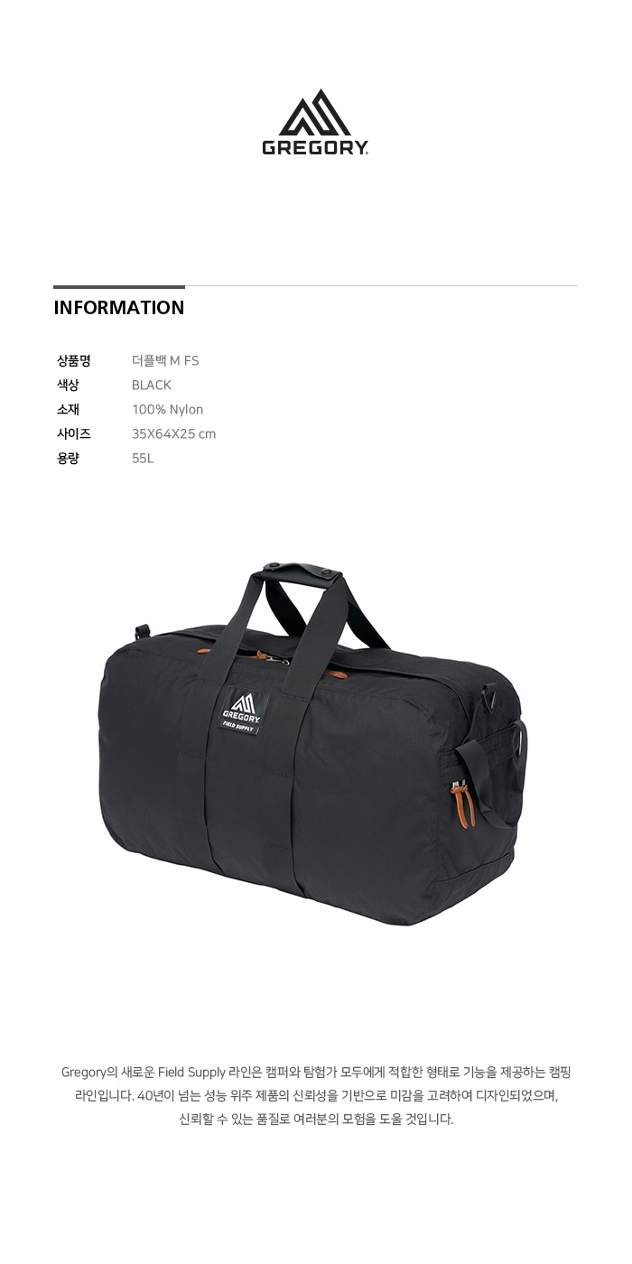 그레고리 더플백M FS 블랙