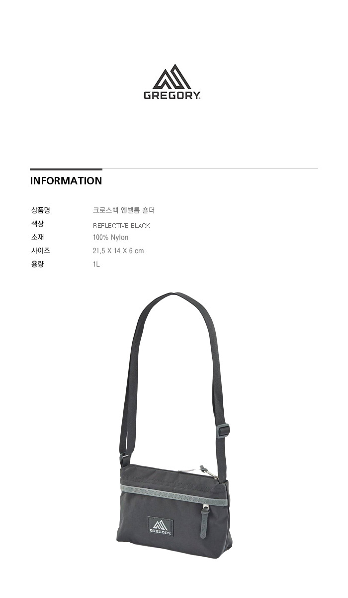 그레고리 엔벨롭 숄더백 리플렉티브 블랙