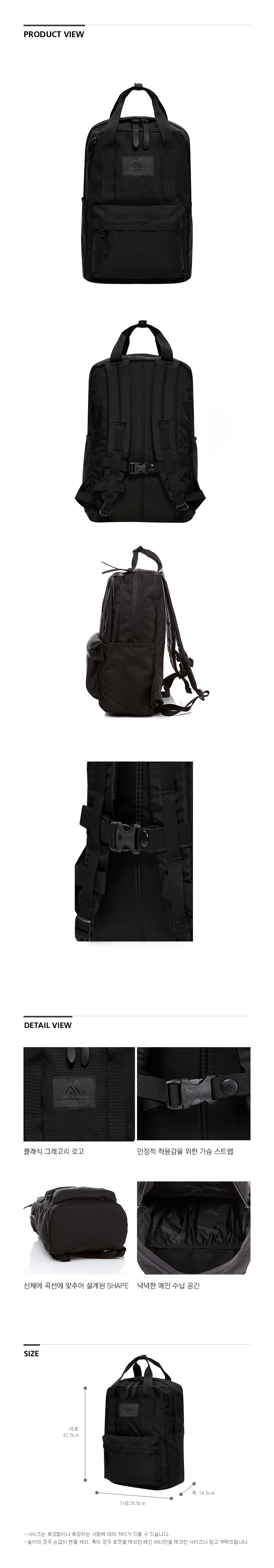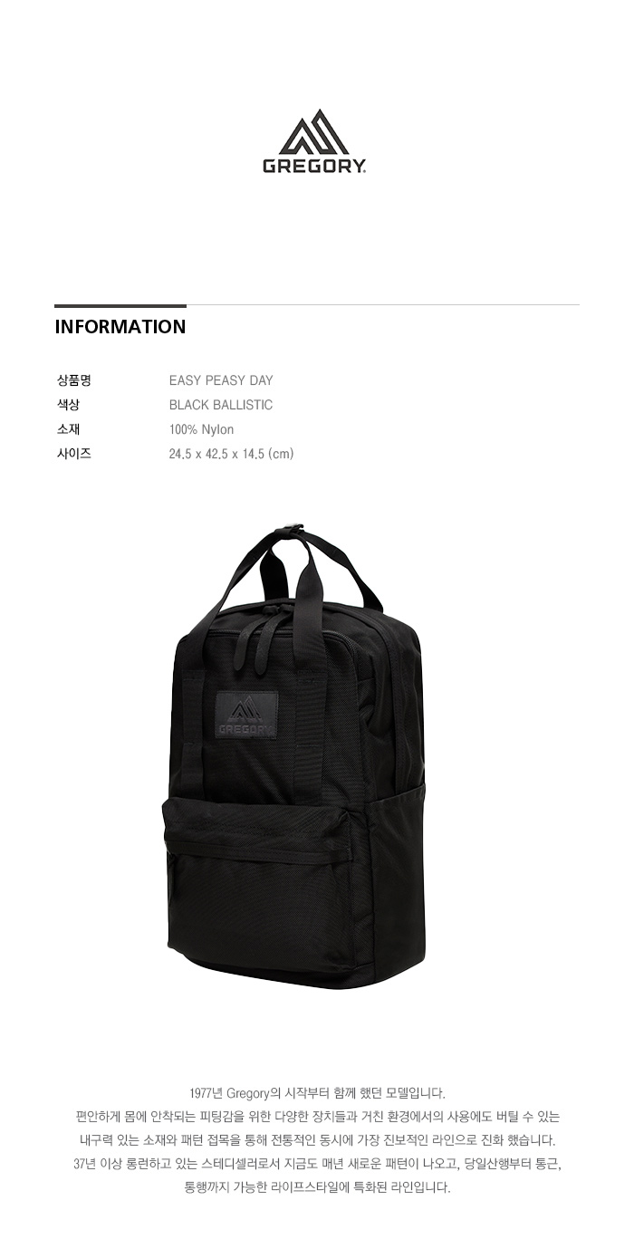 그레고리 이지피지데이 백팩 블랙발리스틱