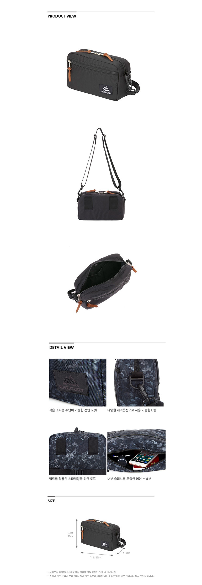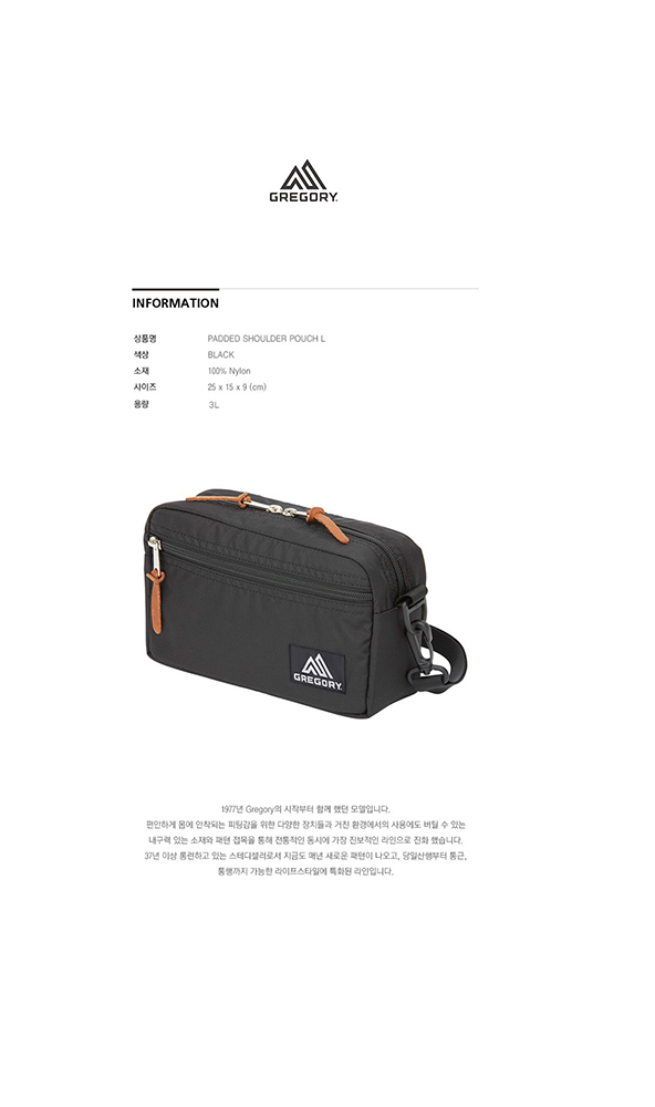 그레고리 패디드 숄더 파우치 L 블랙
