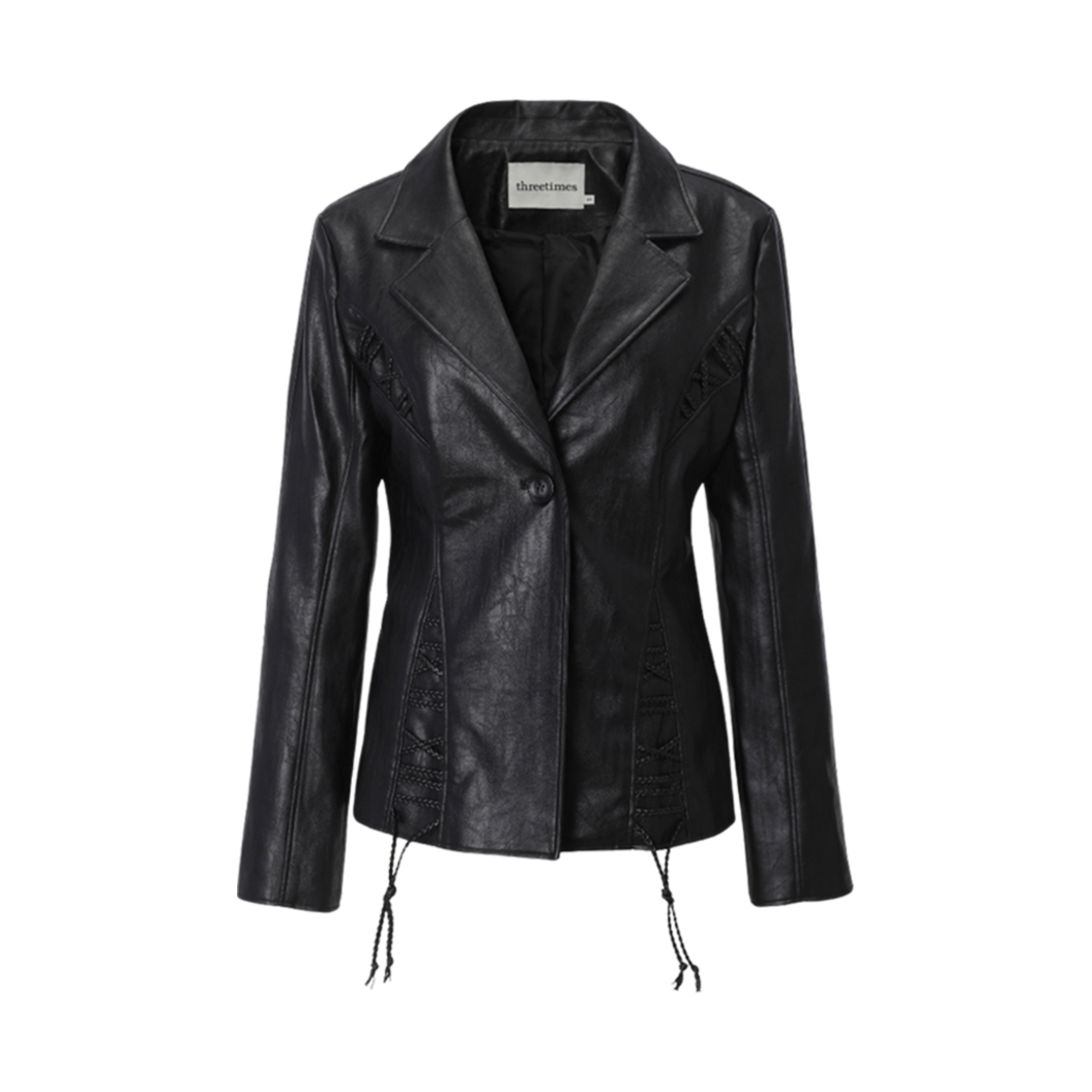 (W) 쓰리타임즈 레이스 업 레더 자켓 블랙