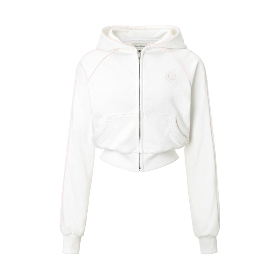 (W) 쓰리타임즈 파이핑 크롭 후드 화이트