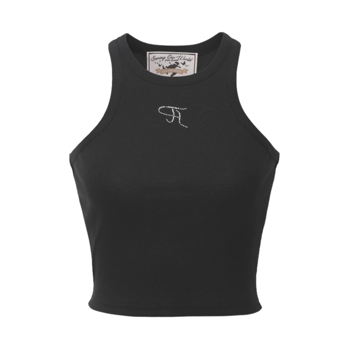 (W) 쓰리타임즈 쥬얼리 탱크 탑 크롭 렝스 블랙