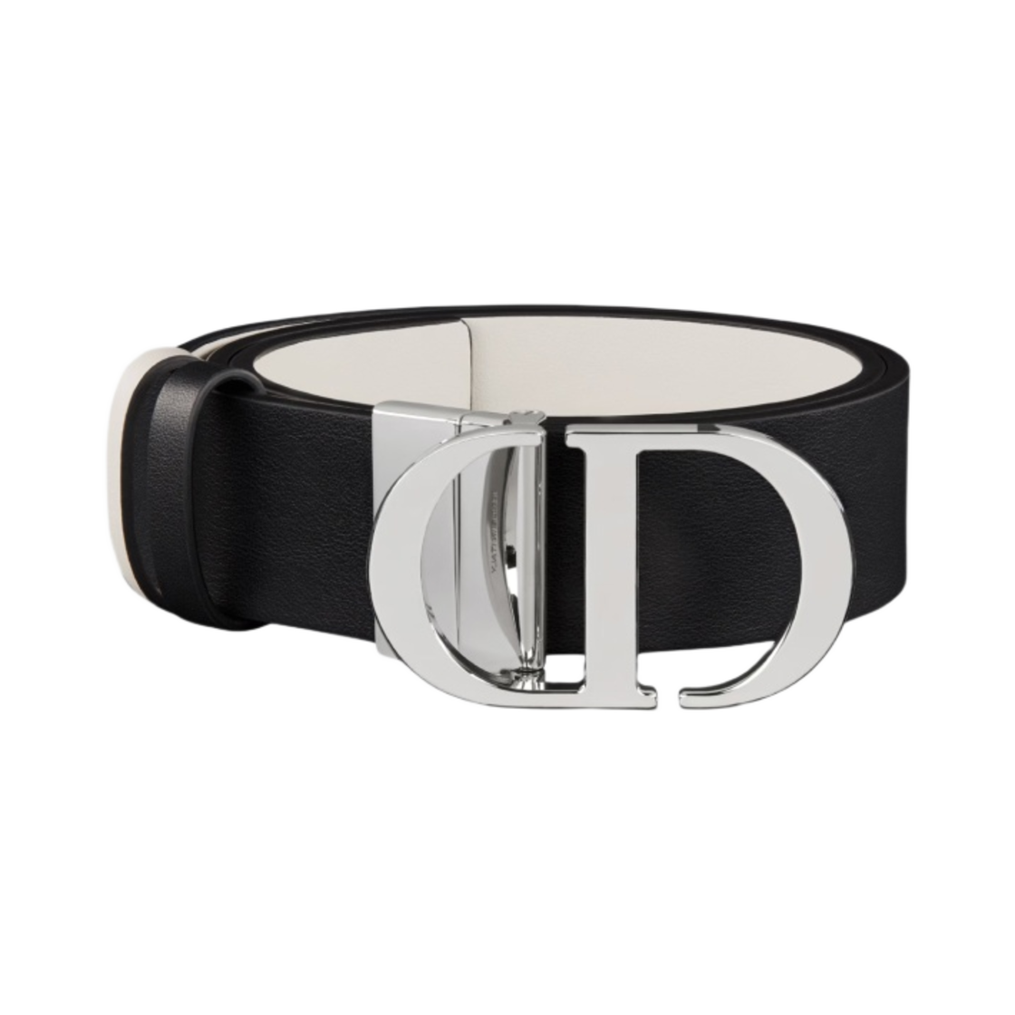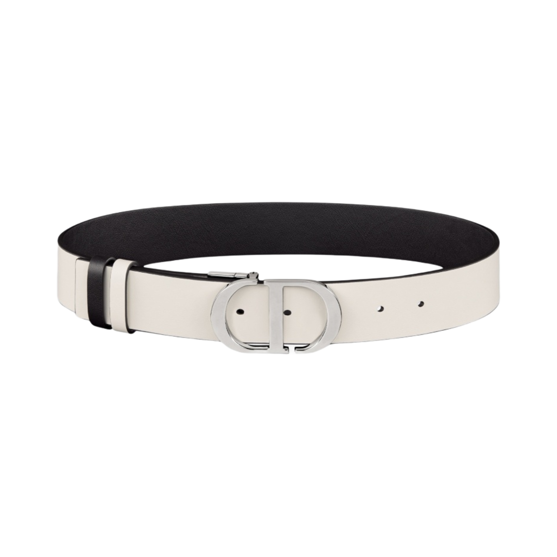 (W) Dior 30 Montaigne Reversible Belt Smooth Calfskin Black White
