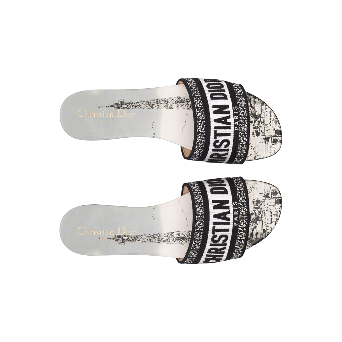 (W) Dior Dway Mule Cotton Embroidered with Paris Motif White Black