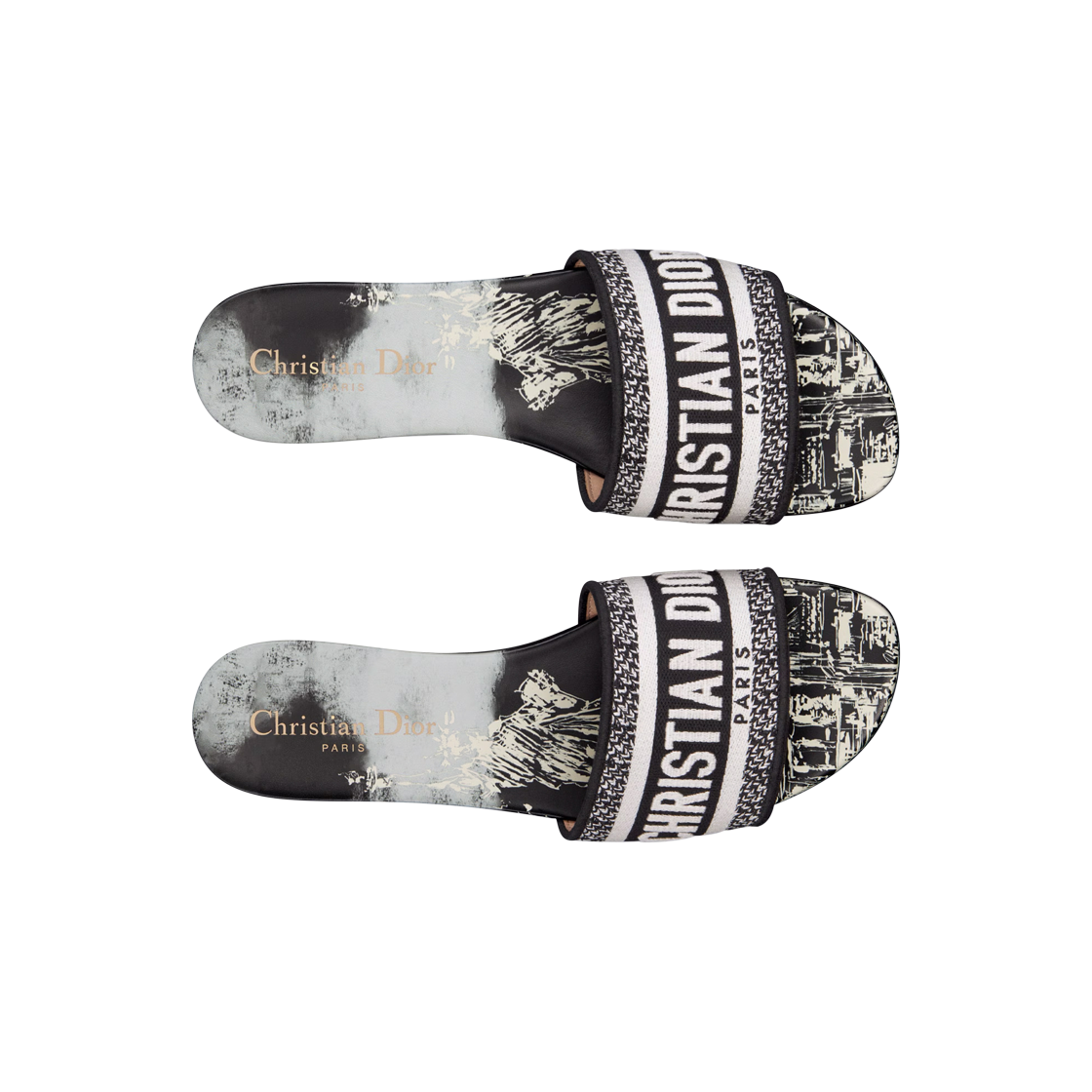(W) 디올 디웨이 뮬 뉴 욕 모티프 자수 코튼 블랙 화이트