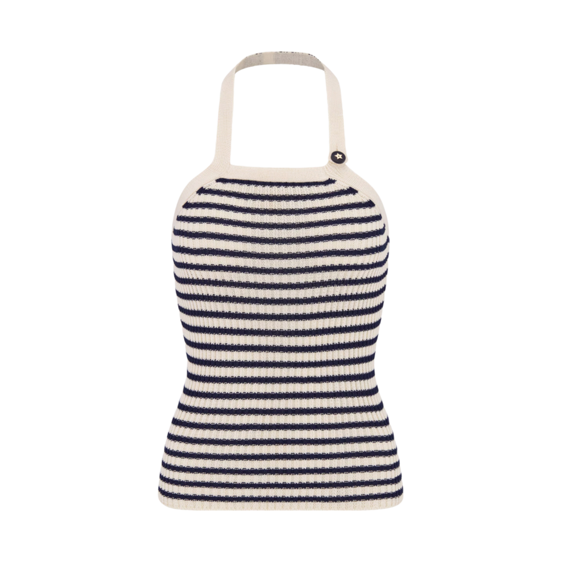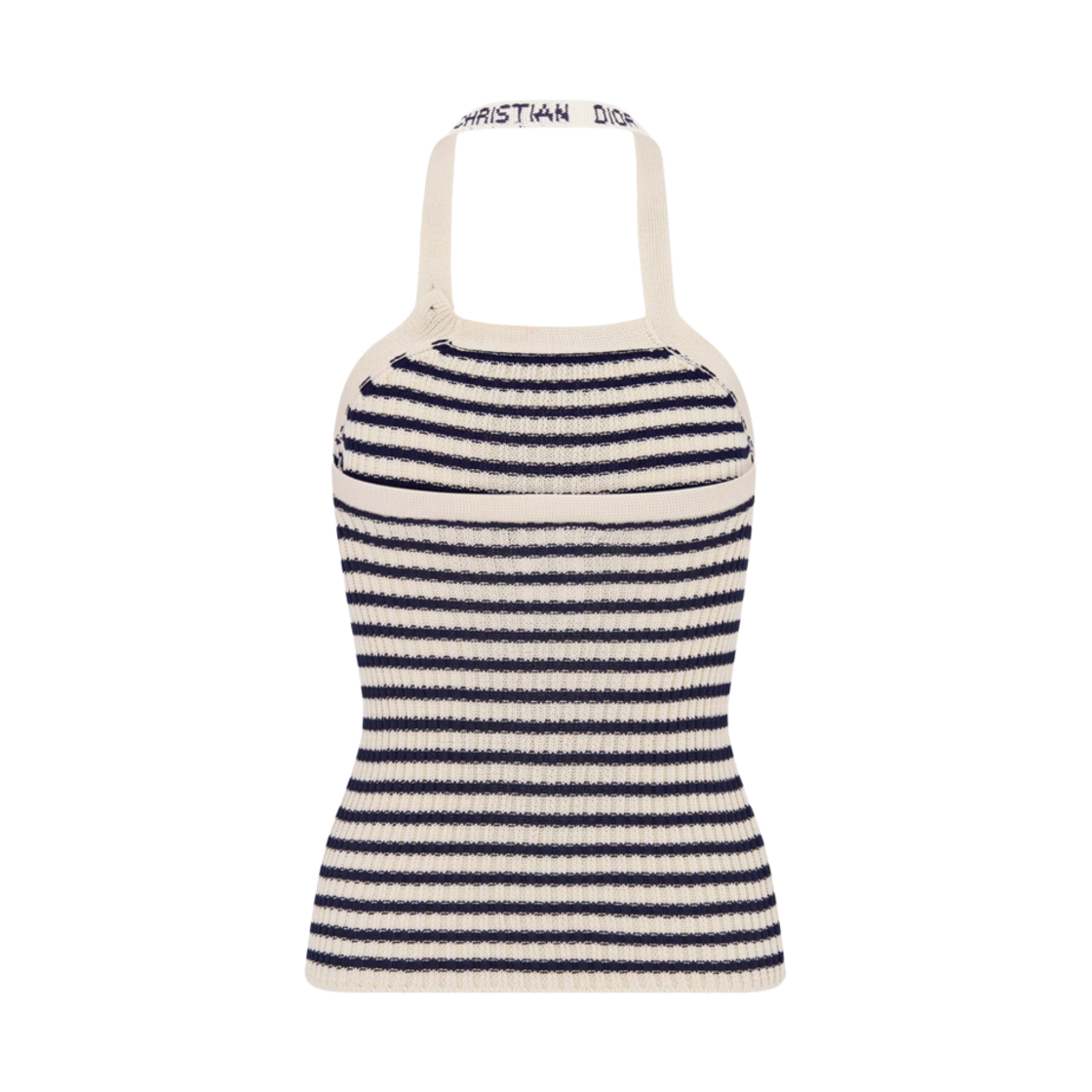 (W) Dior Dioriviera Backless Tank Top Cotton Ribbed Knit with Dior Mariniere Motif White Navy Blue