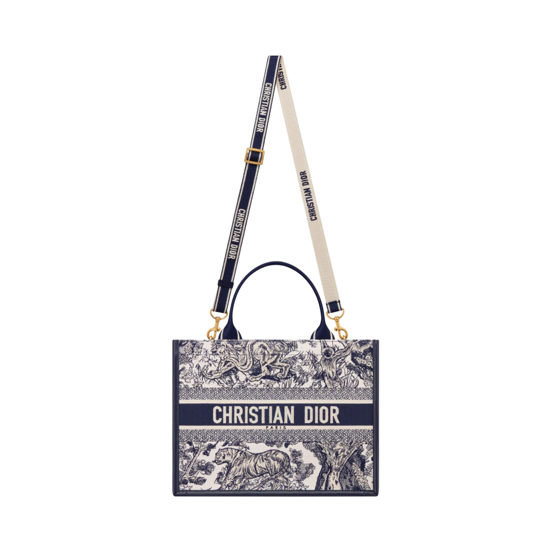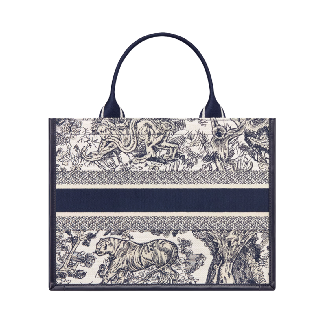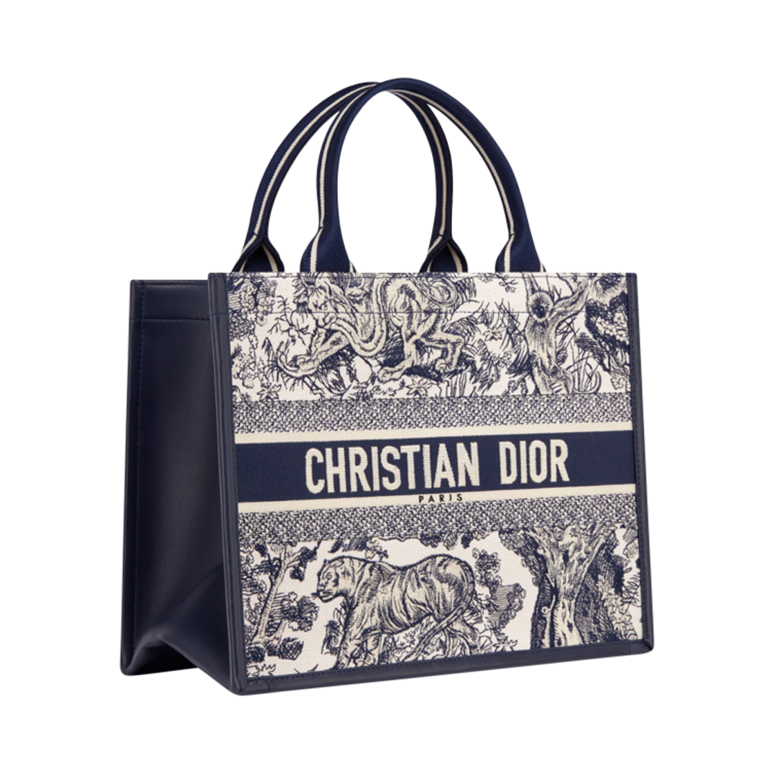Dior Book Tote Medium Bag Toile De Jouy Sauvage Embroidered White Navy Blue