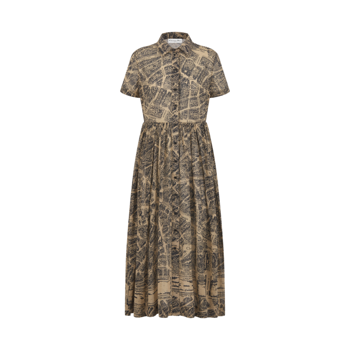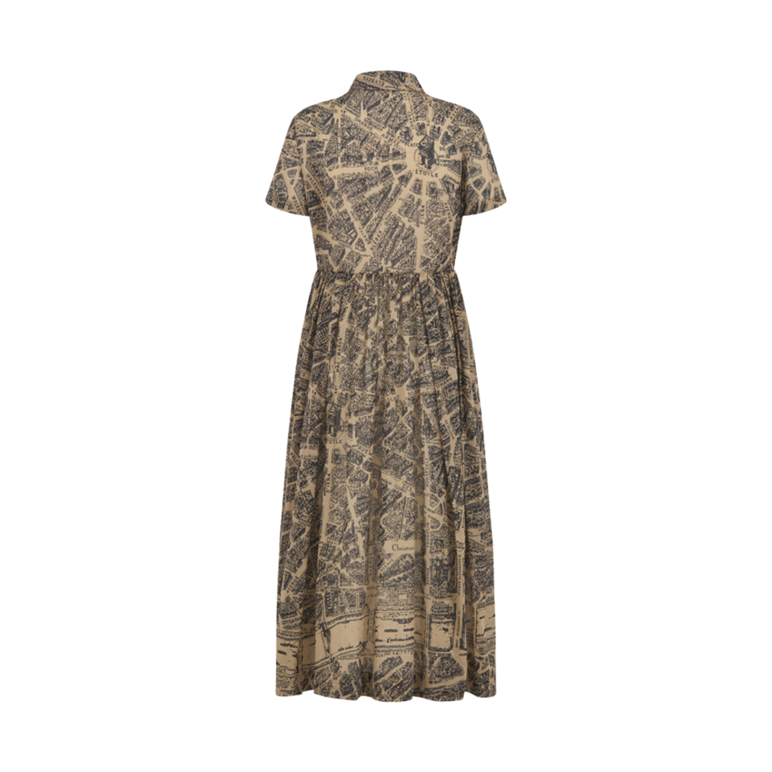 (W) Dior Mid-Length Shirt Dress Beige Black Voile Plan Paris Motif