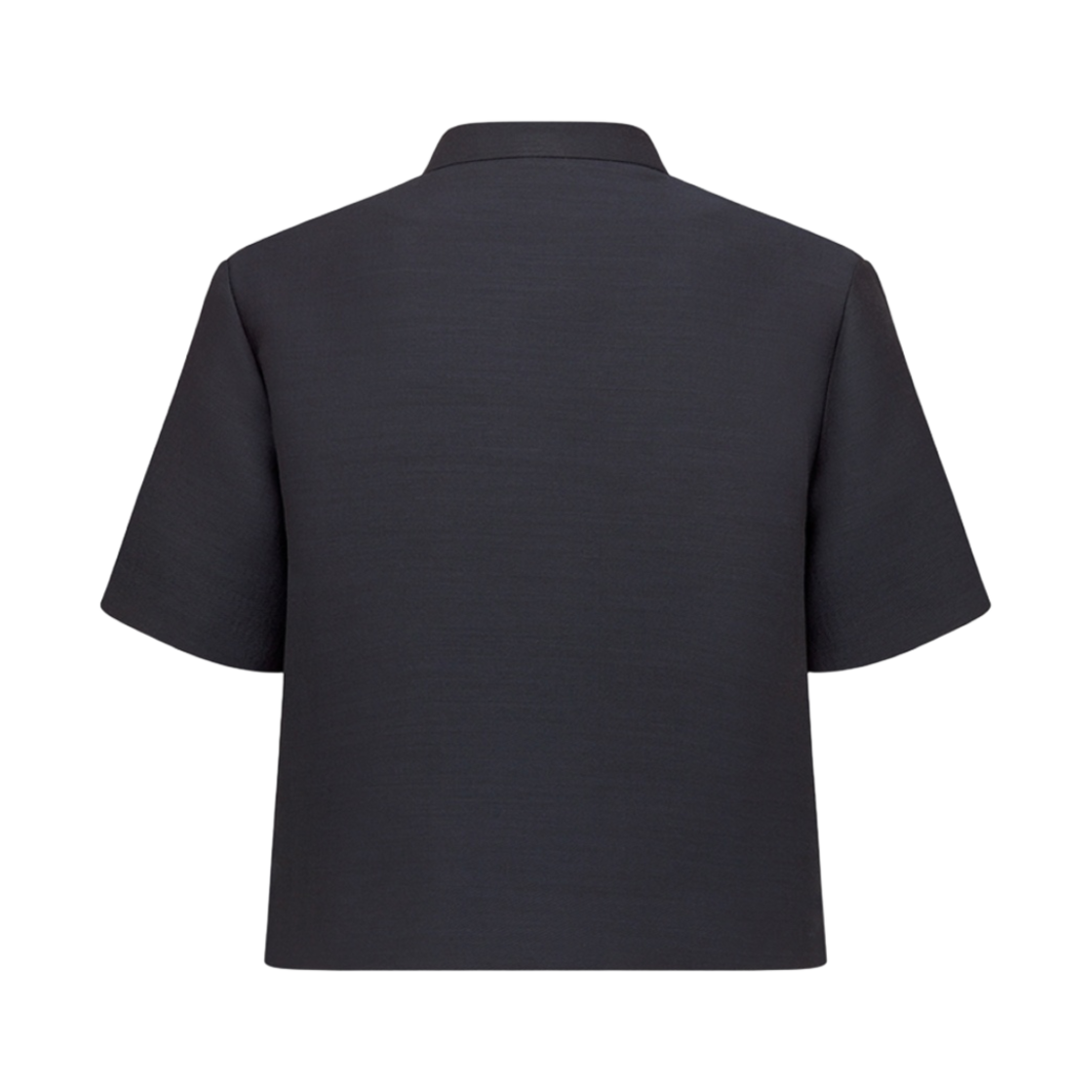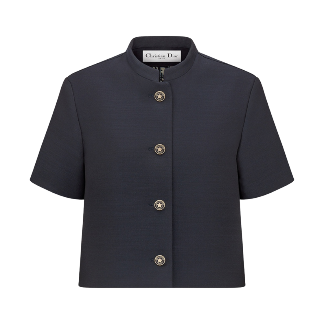 (W) Dior Short-Sleeved Jacket Navy Blue Silk Wool Twill