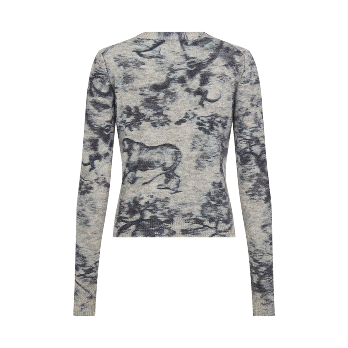 (W) Dior Sweater Ecru Blue Technical Cashmere Mohair Wool Knit The Sauvage Chine Motif