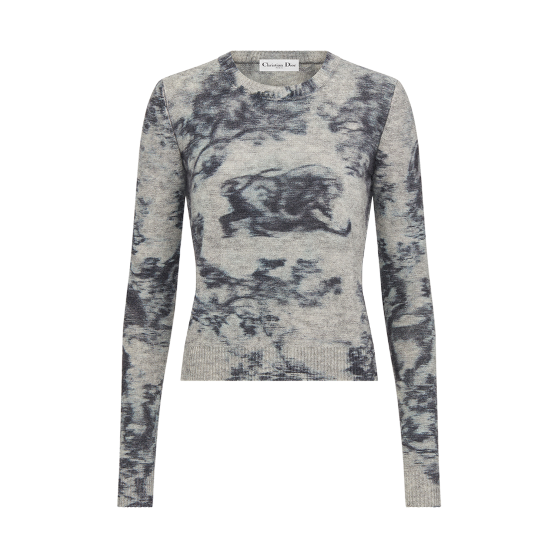 (W) 디올 스웨터 에크루 블루 테크니컬 캐시미어 모헤어 울 니트 더 소바쥬 신 모티프