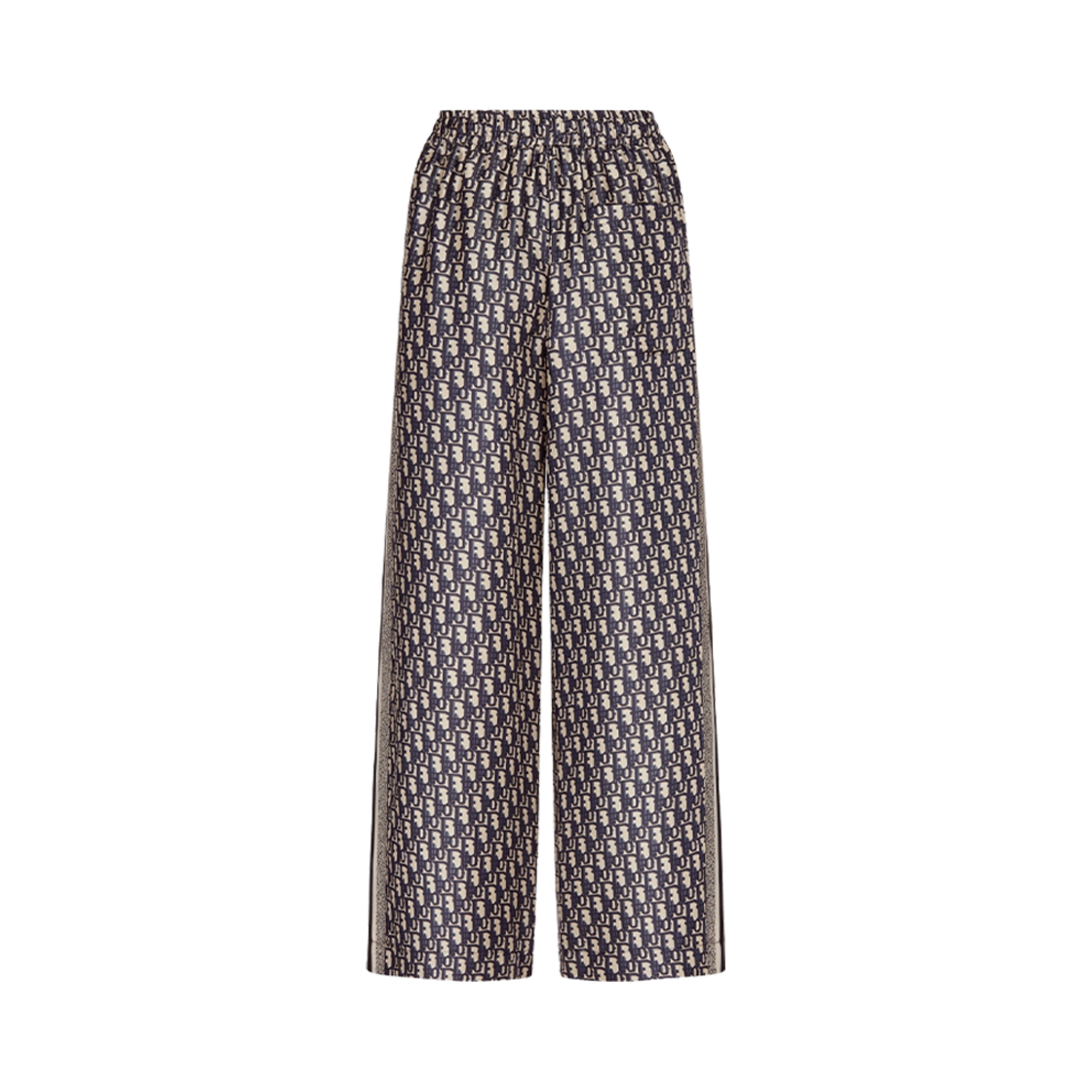 (W) Dior Chez Moi Pants Blue Oblique Silk Twill