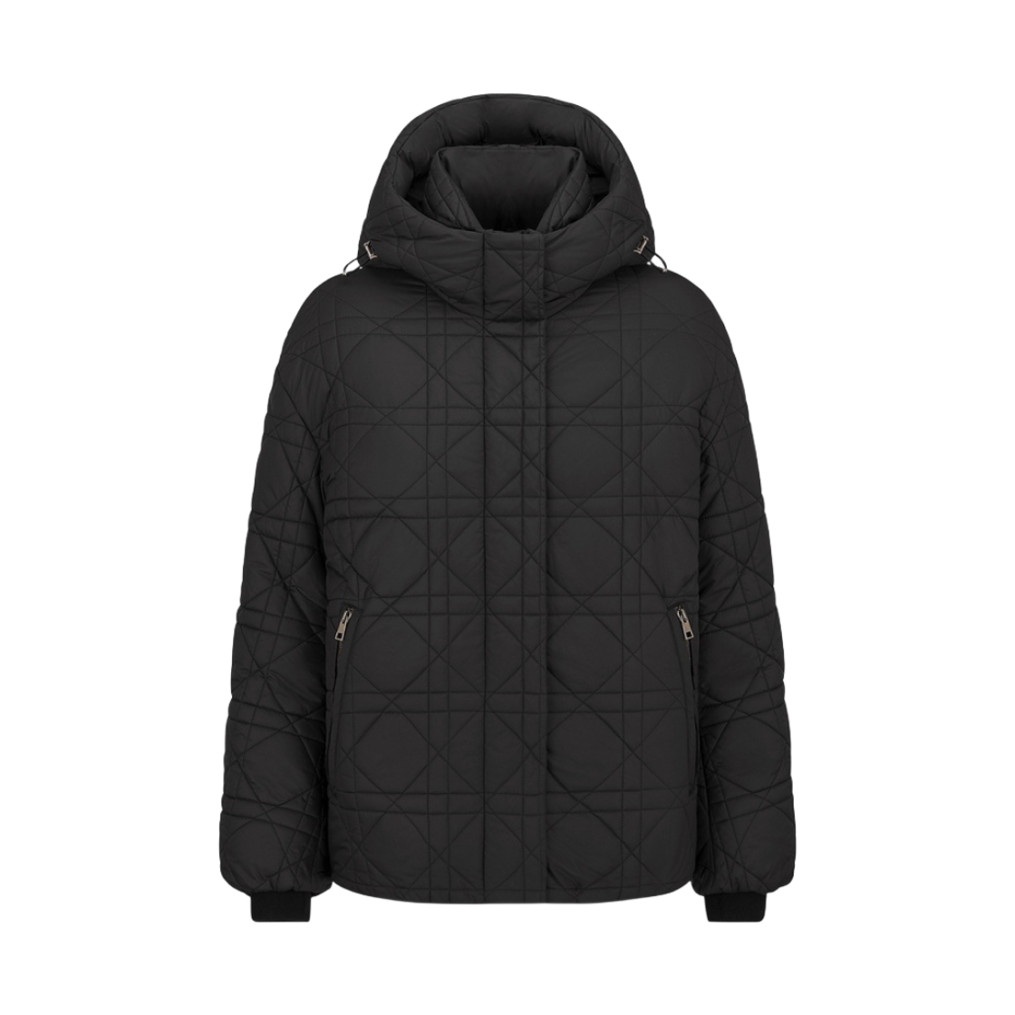 (W) Dioralps Macrocannage Hooded Puffer Jacket Black Quilted Technical Taffeta