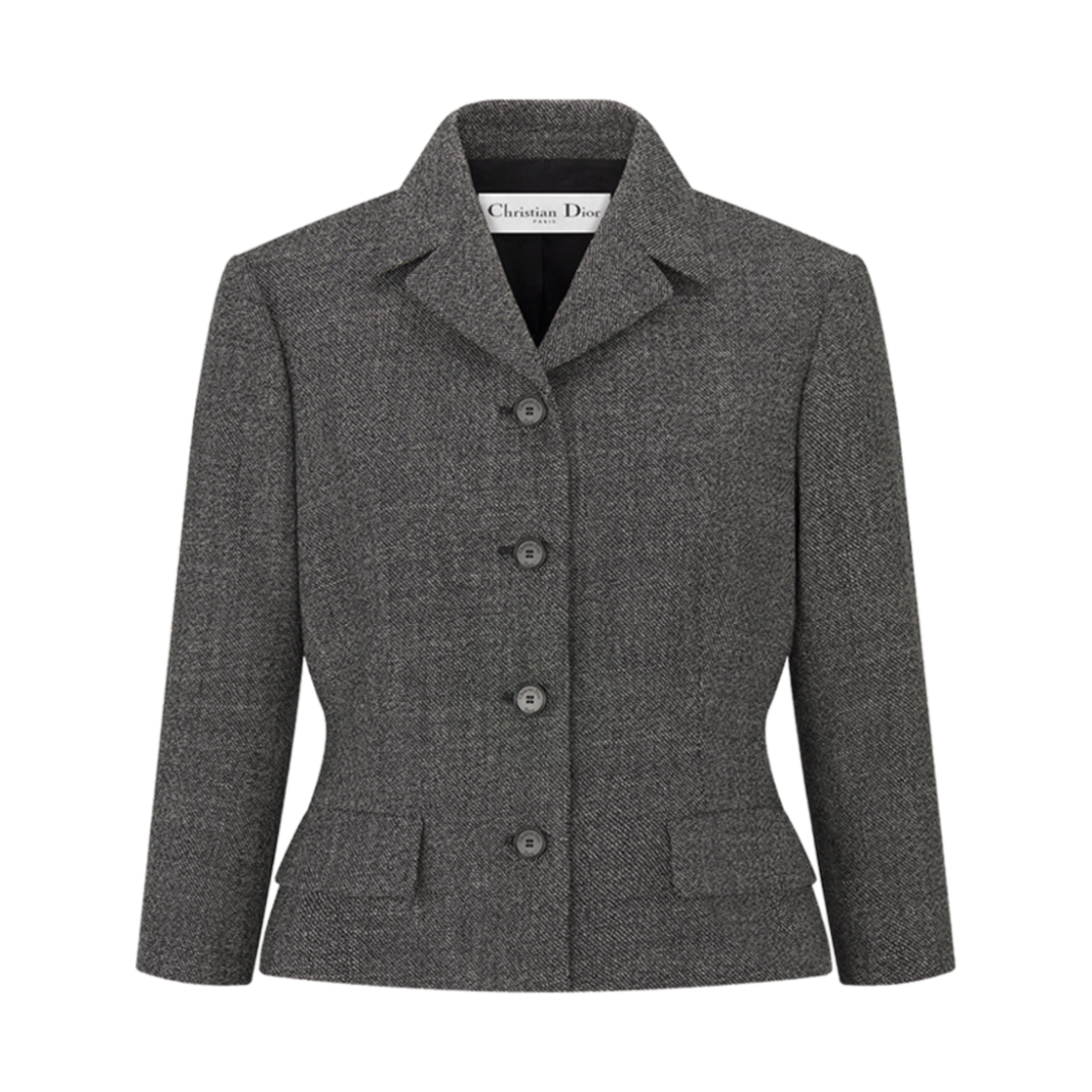 (W) 디올 핏티드 자켓 쓰리 쿼터 슬리브 그레이 버진 울 트위드