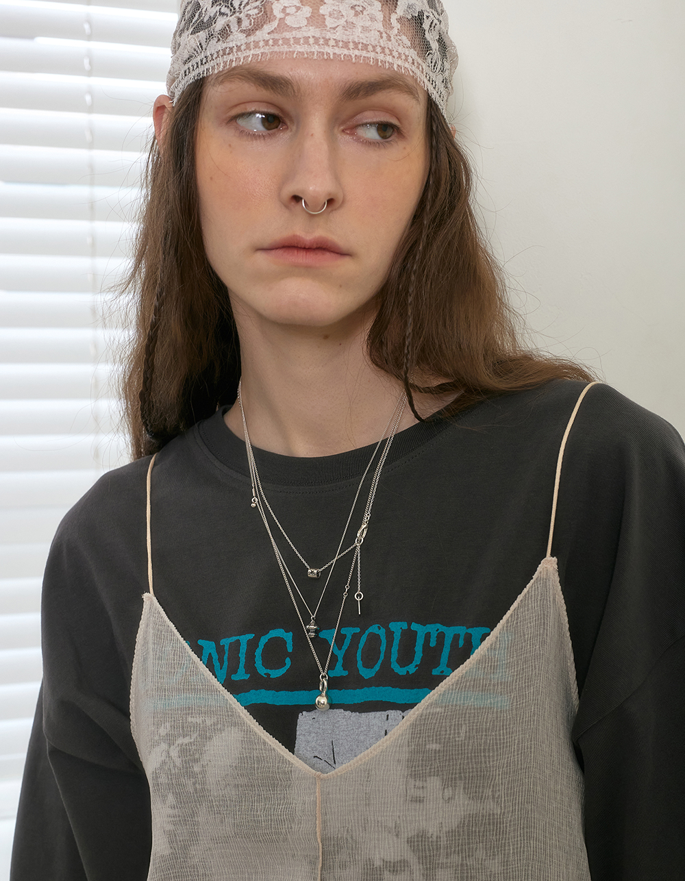 별무늬의 버섯 펜던트가 달린 실버 네클리스입니다.
