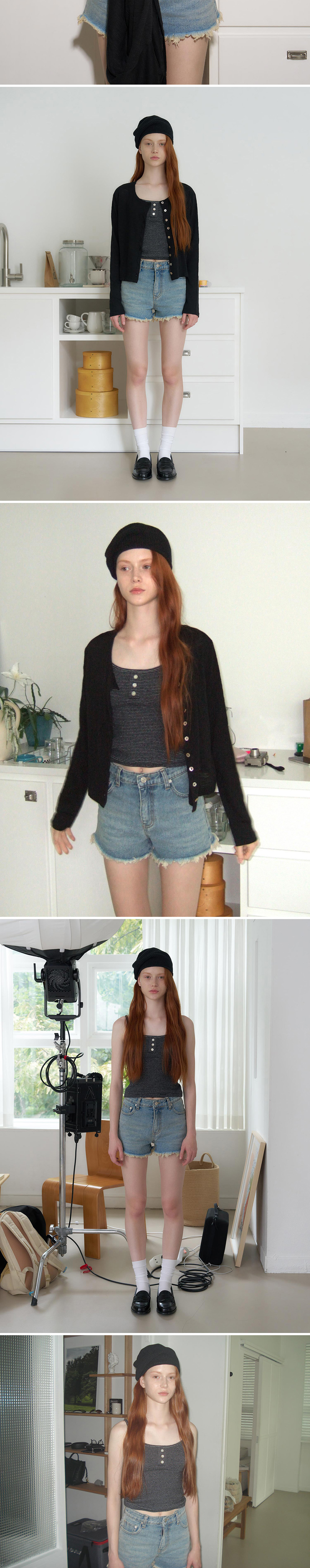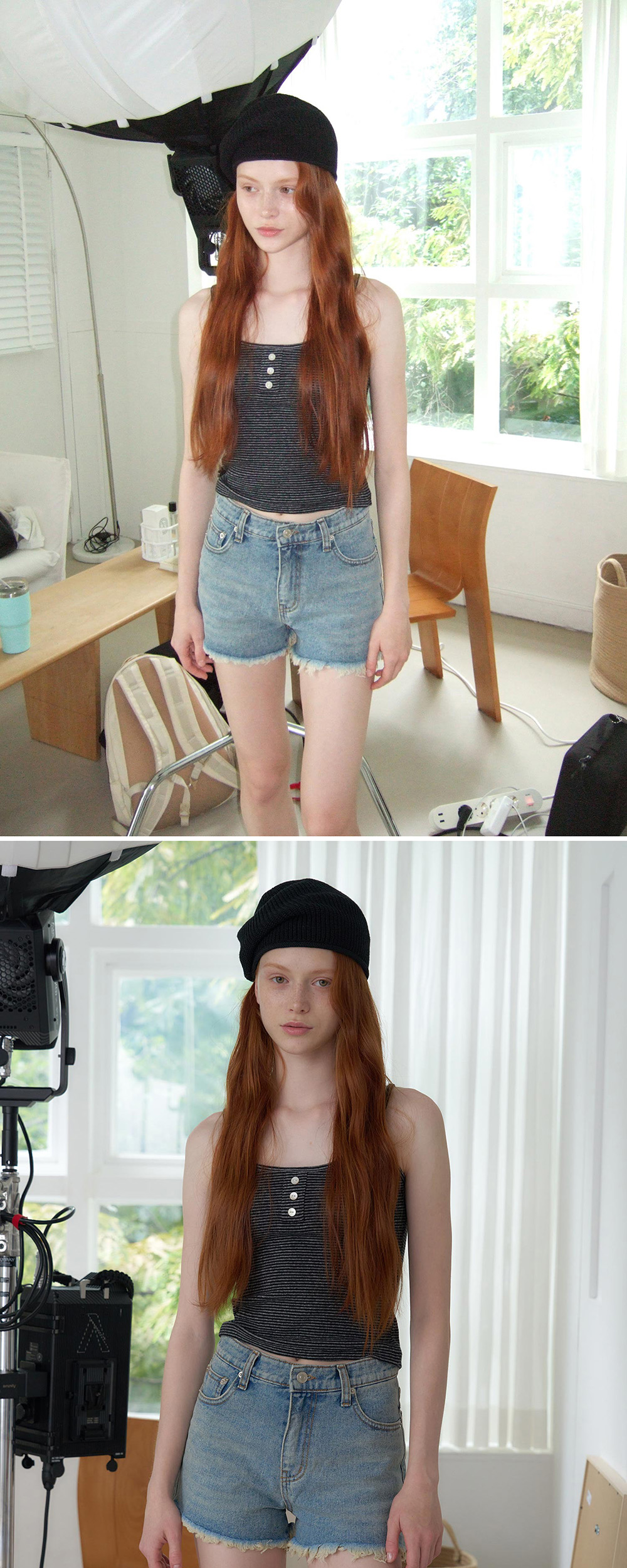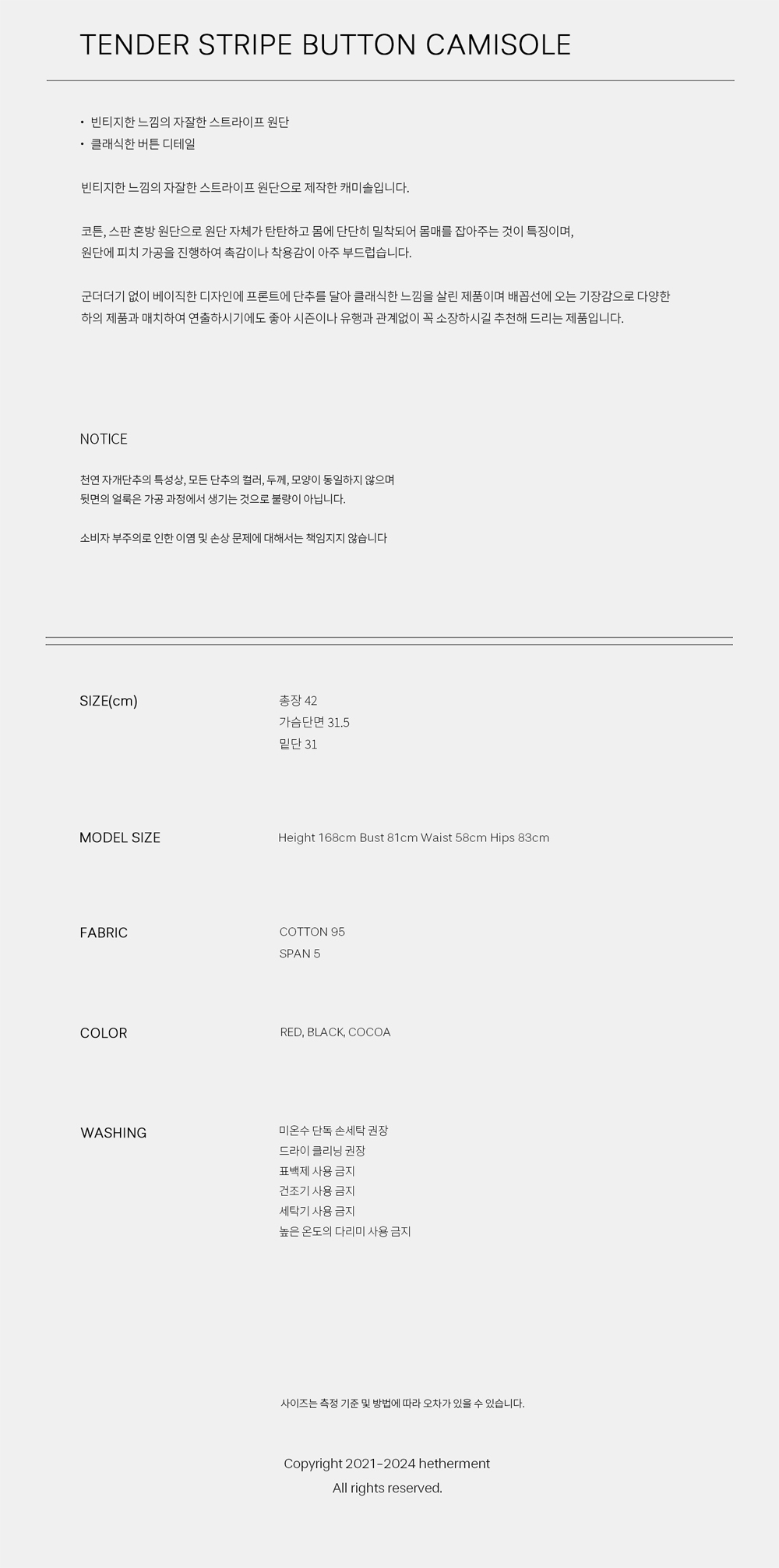 헤더먼트 텐더 스트라이프 버튼 캐미솔 블랙