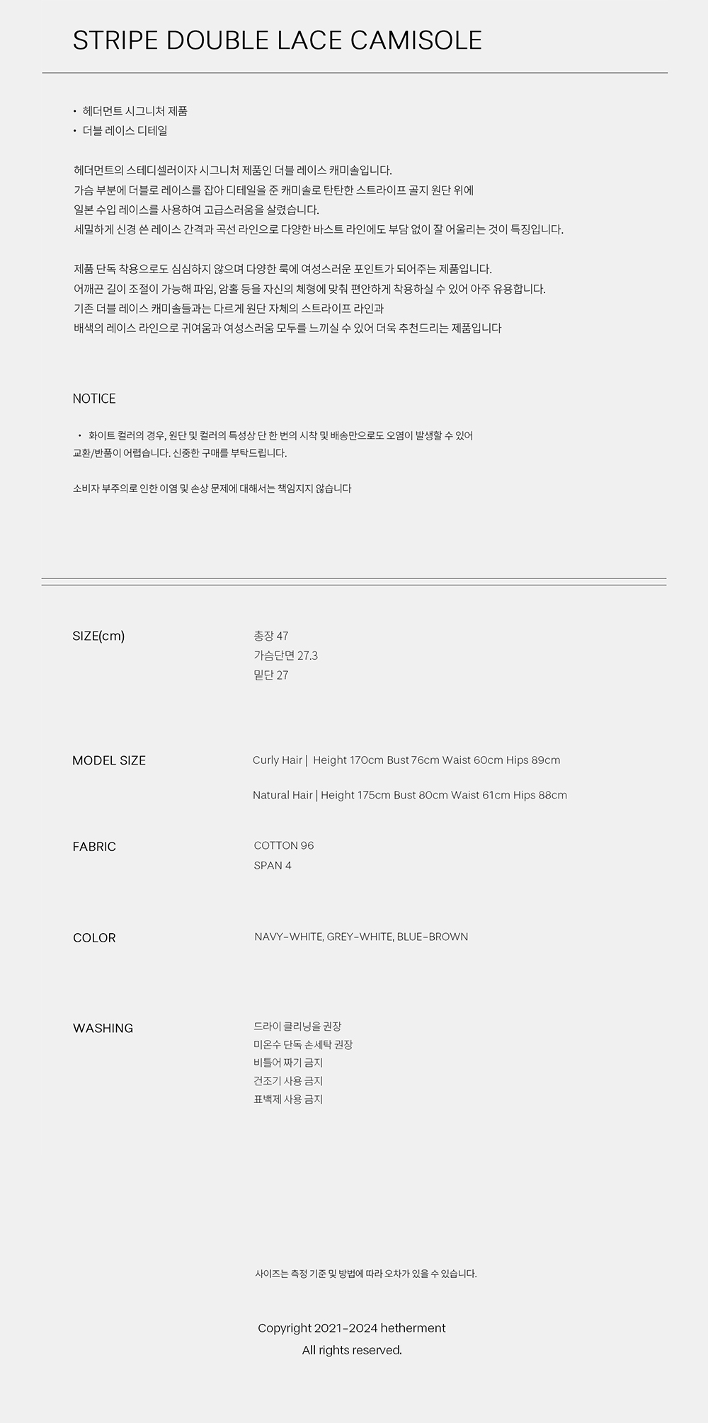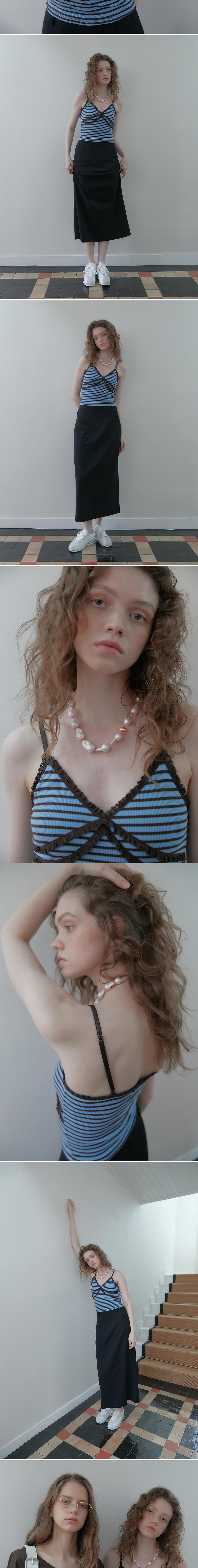 헤더먼트 스트라이프 더블 레이스 캐미솔 블루 - 브라운