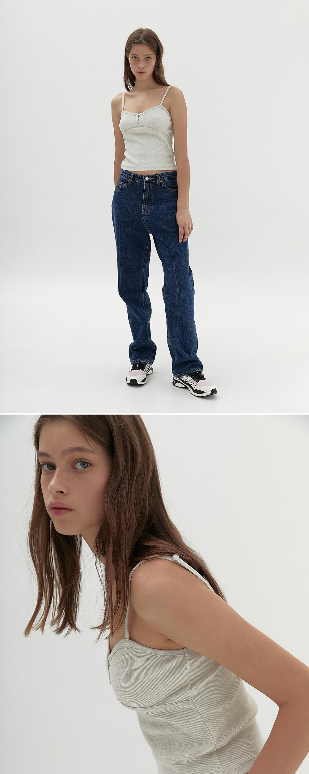 [예약 배송] 헤더먼트 바인딩 버튼 캐미솔 오트밀 멜란지