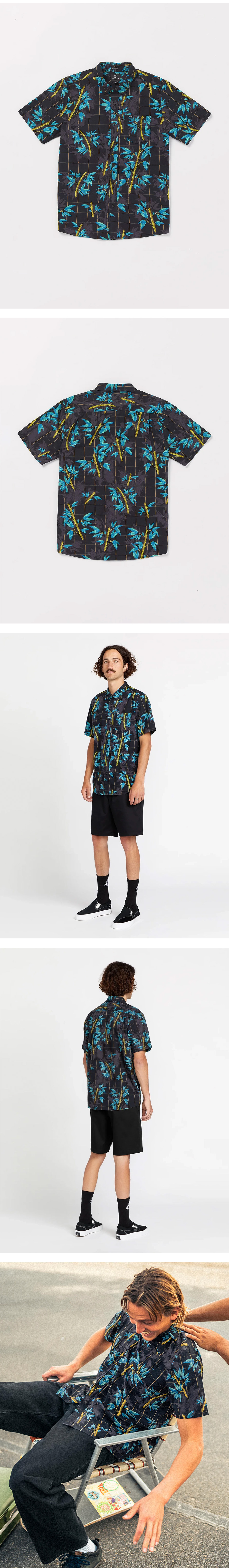 볼컴 뱀부젤리드 플로럴 반팔 셔츠 블랙