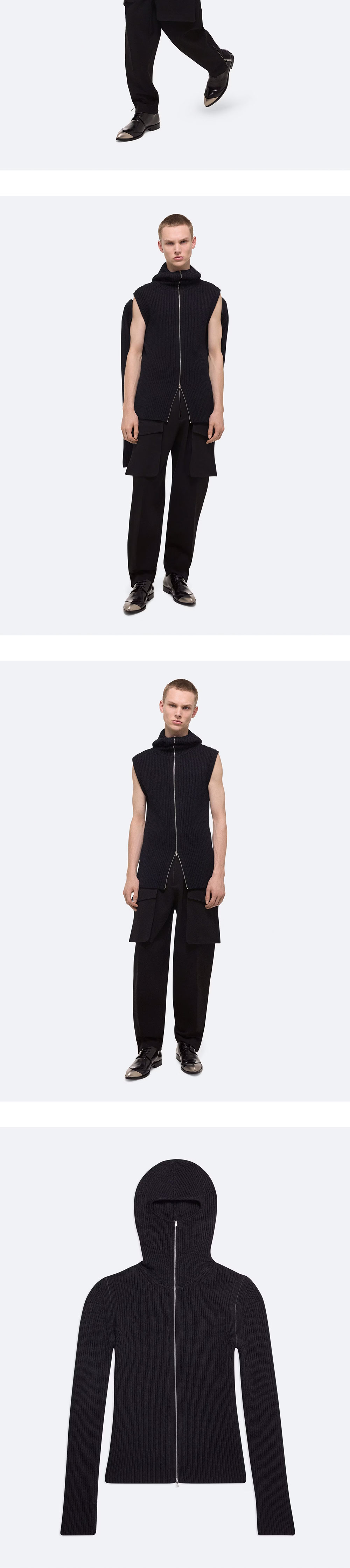 바라클라바 후드와 탈부착 가능한 소매로 다양한 연출이 가능한 헬무트 랭의 세이프티 바라클라바 후디입니다. - 이탈리안 메리노 울 소재 - 투웨이 지퍼 - 암홀 지퍼로 소매 탈부착 가능 | 사이즈 가이드 | - 모델: 188cm - 착용 사이즈: M