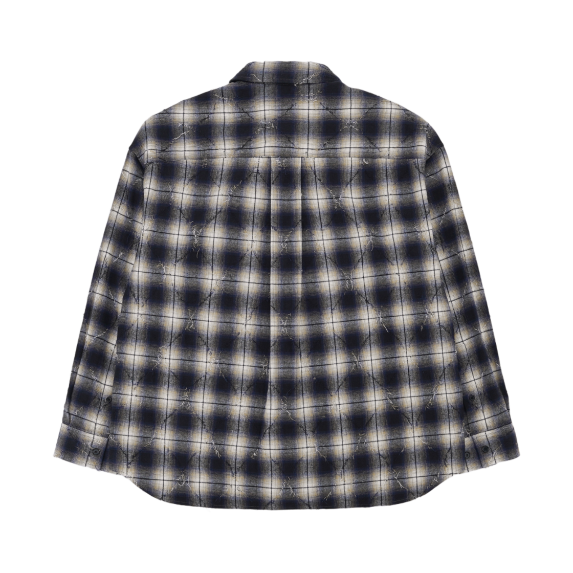 준지 루즈핏 아가일 데미지드 프린지 체크 셔츠 블루 - 24FW