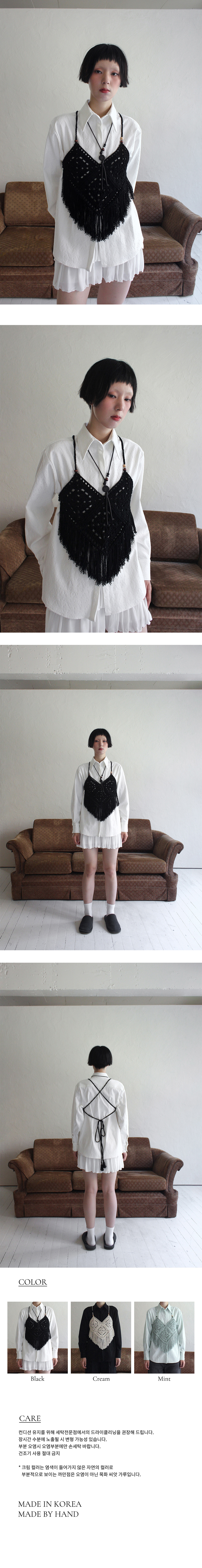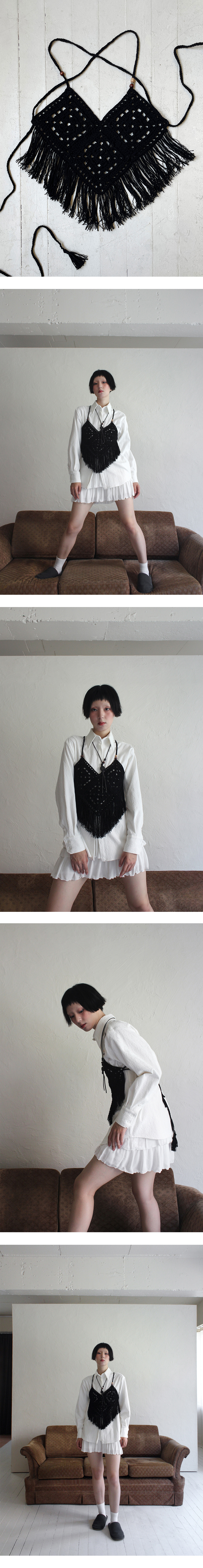 루바티 핸드메이드 크로쉐 태슬 니트 베스트 블랙