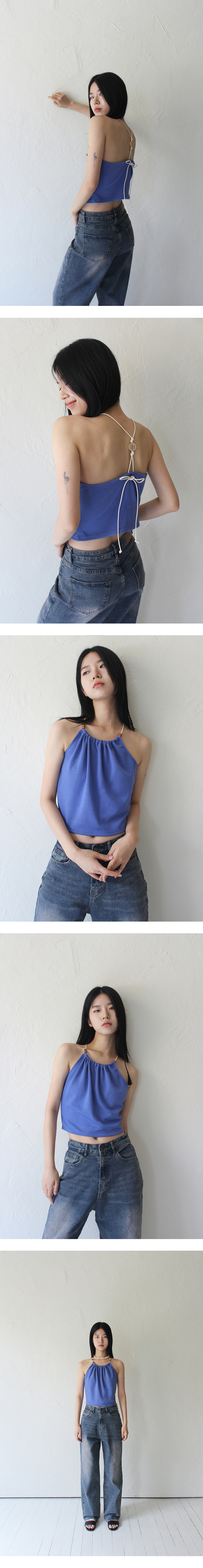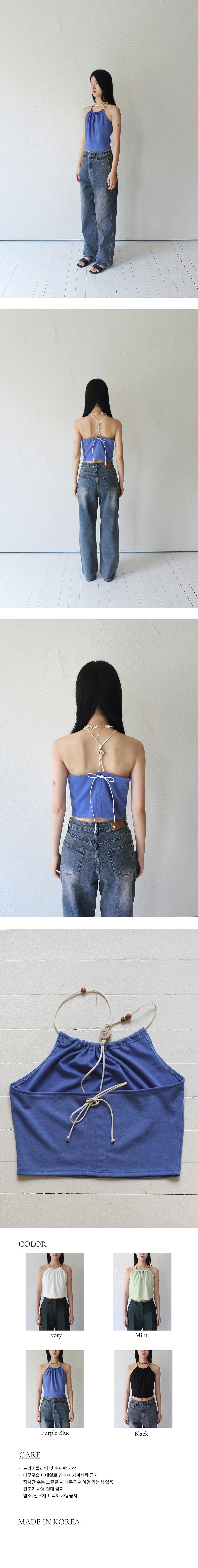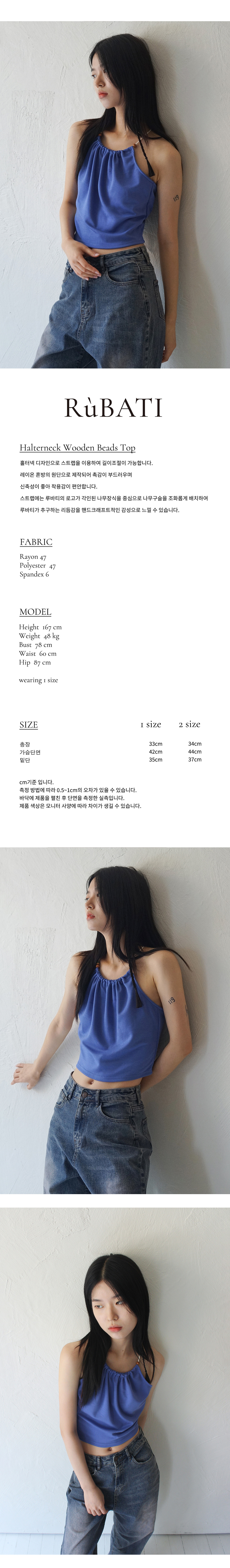 루바티 홀터넥 우든 비즈 탑 퍼플블루