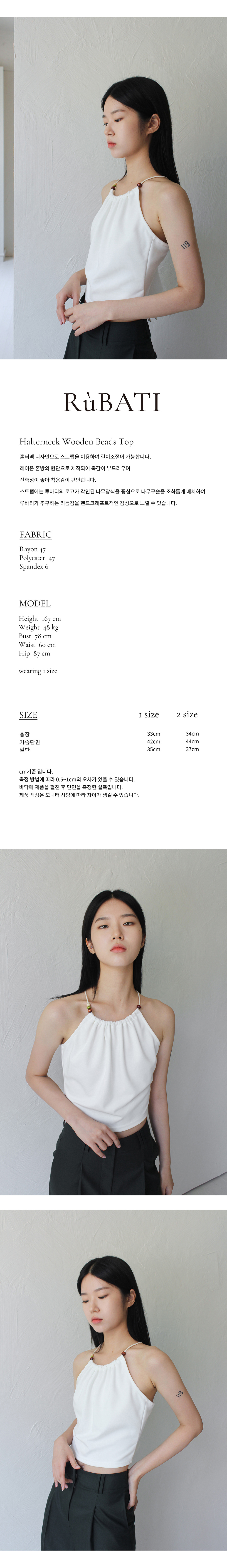 루바티 홀터넥 우든 비즈 탑 아이보리