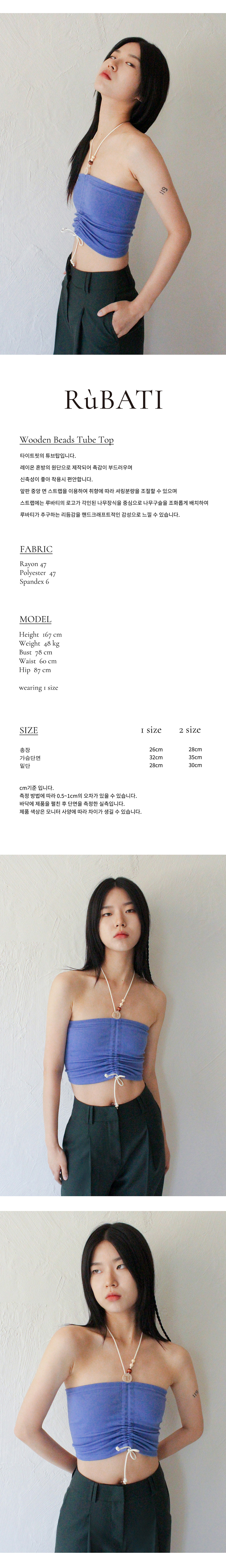 루바티 우든 비즈 튜브탑 퍼플블루