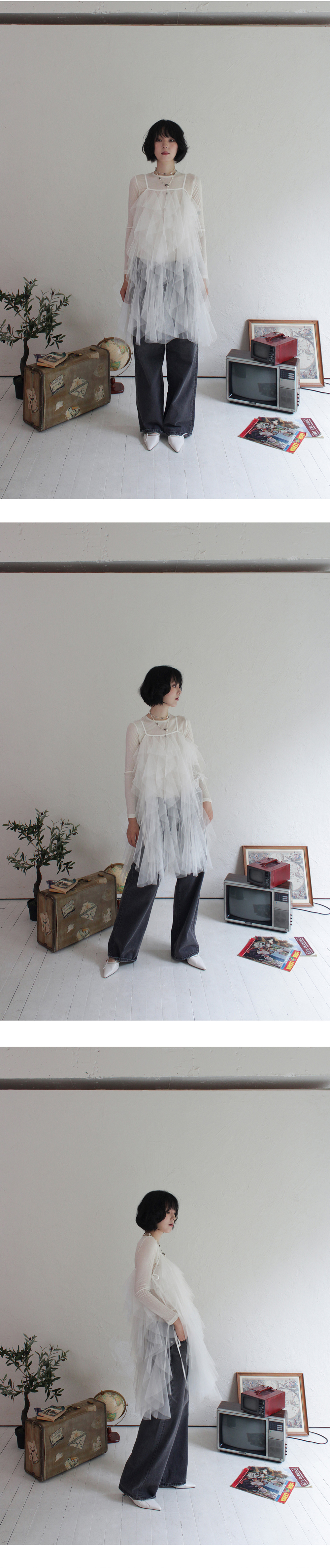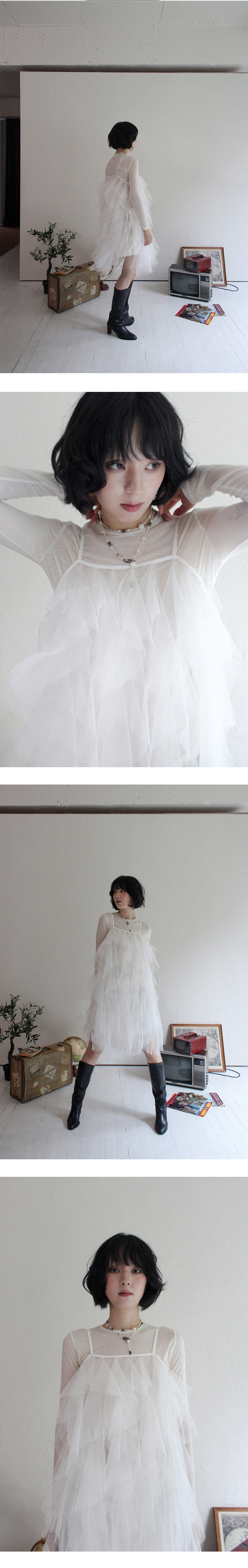루바티 에어리 튤 레이스 레이어드 드레스 화이트
