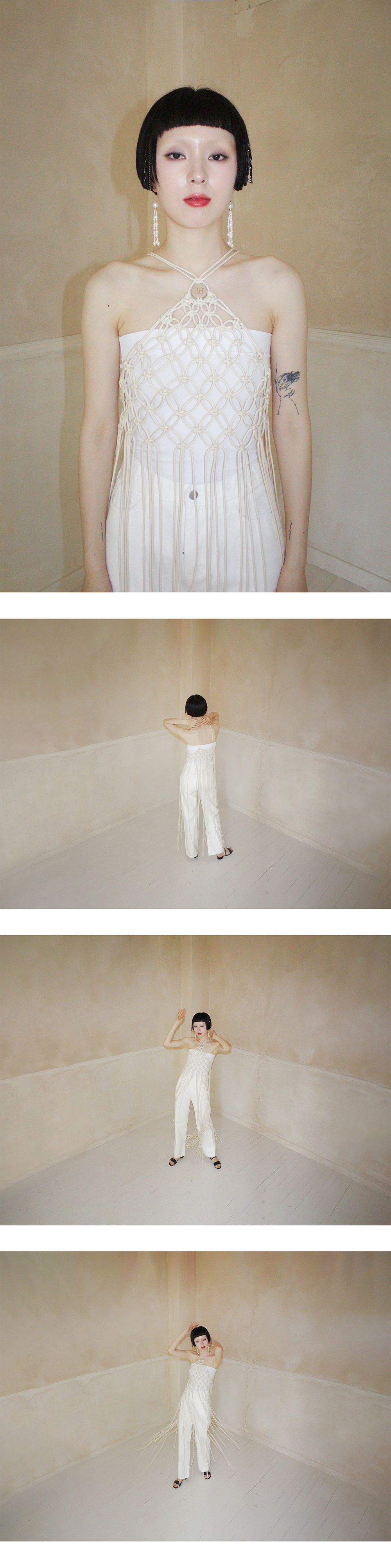 루바티 마크라메 홀터넥 드레스 크림
