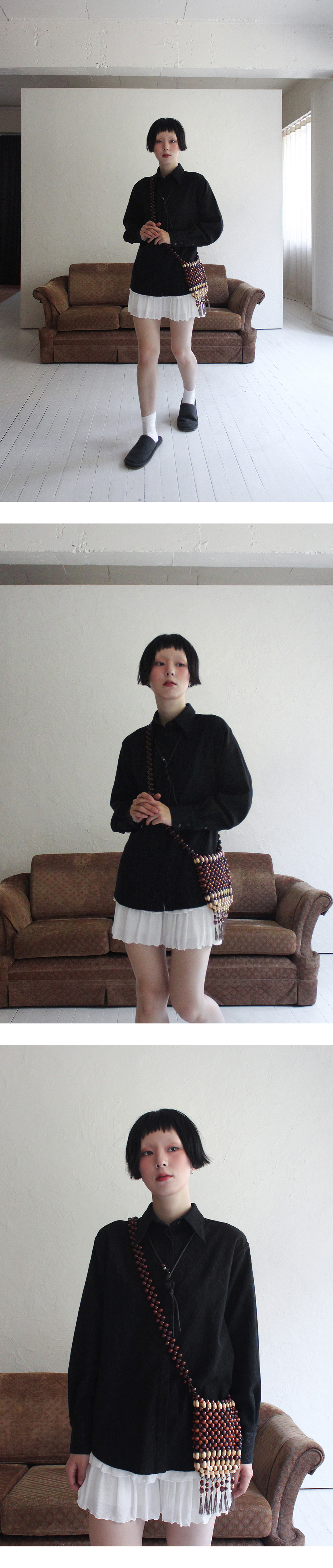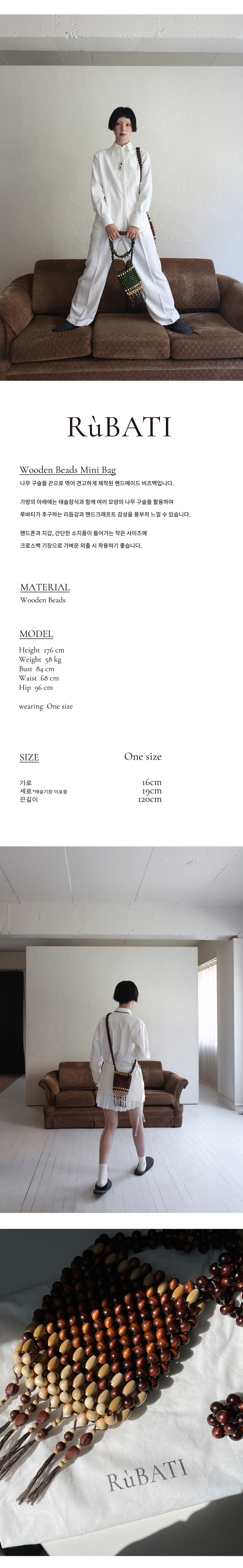 루바티 핸드메이드 태슬 우든 비즈백 브라운