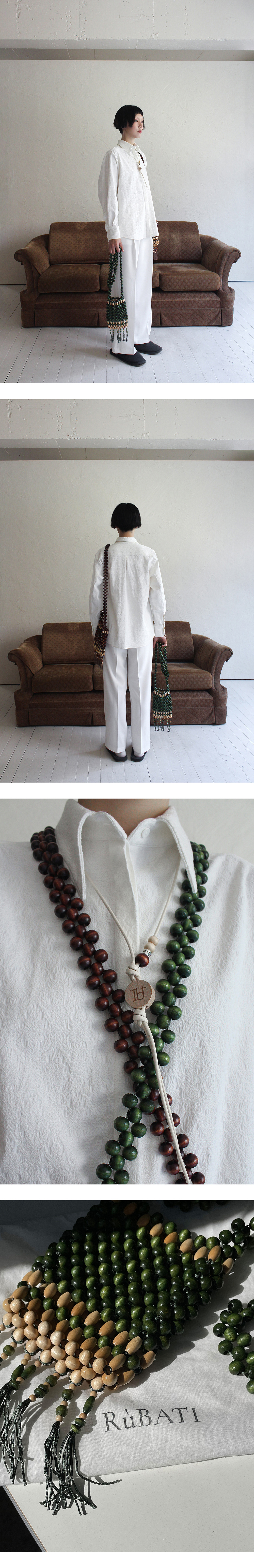 루바티 핸드메이드 태슬 우든 비즈백 그린