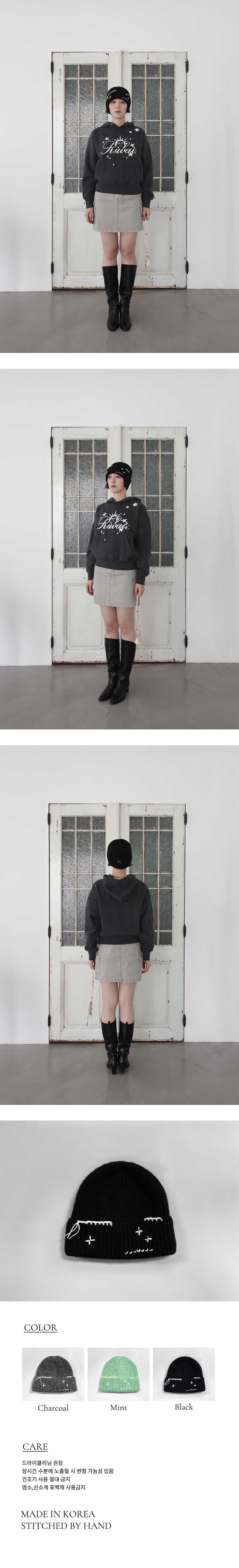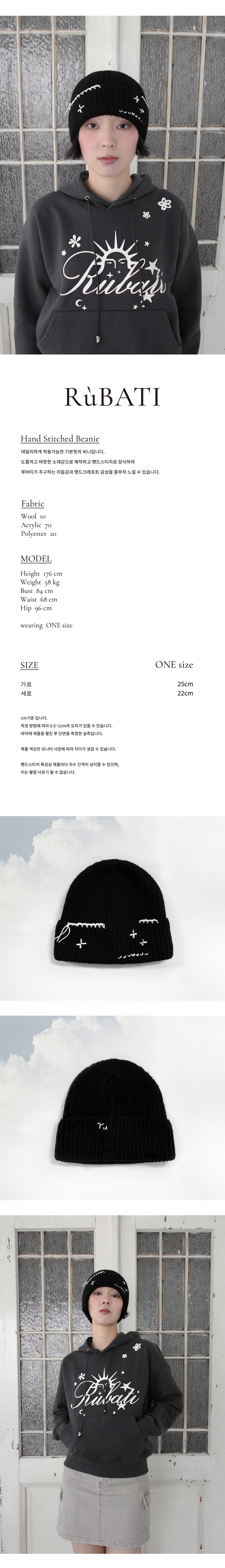 루바티 핸드스티치 비니 블랙