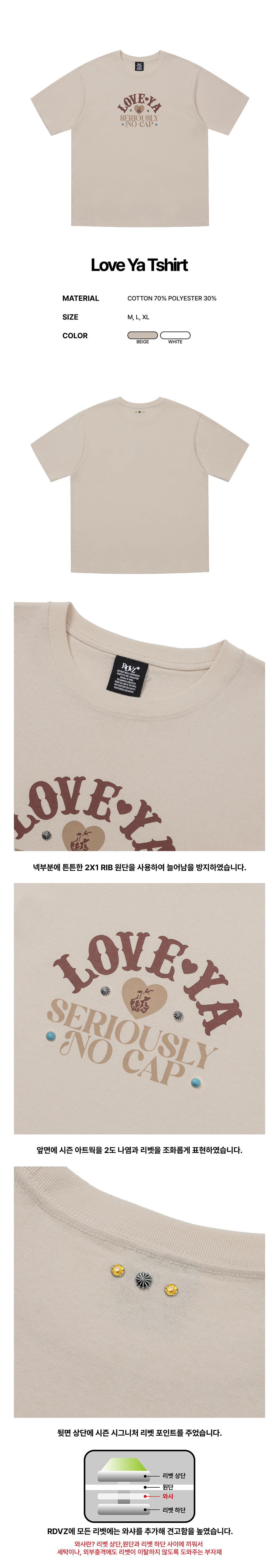 알디브이제트 러브야 티셔츠 베이지